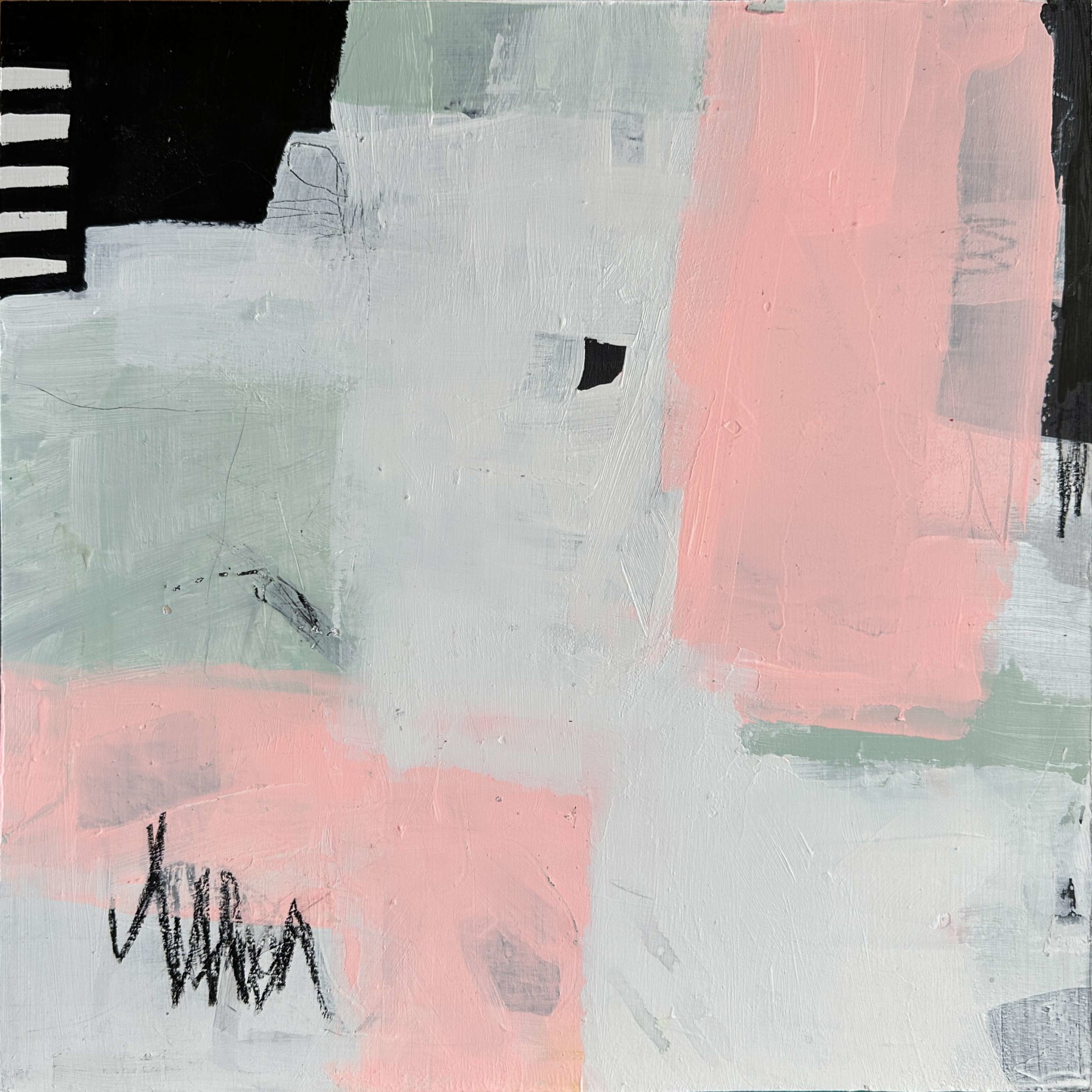 The Writing's On The Wall (12x12") is an original abstract mixed media painting on cradled wood panel created by contemporary Toronto artist Paige Ring.