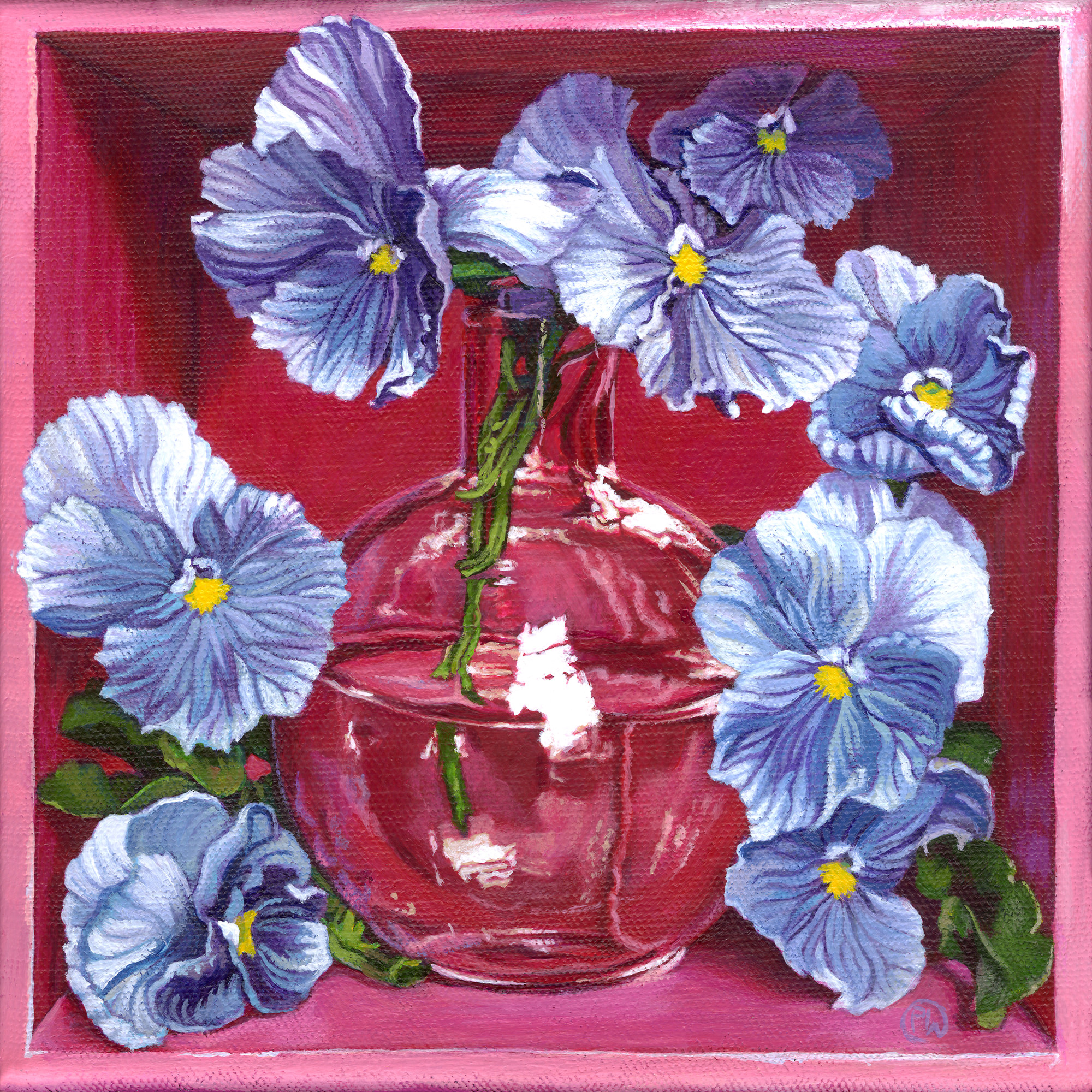 This original acrylic painting is on 8" x 8" stretched canvas with matching painted sides to enhance the 'boxed' look and is wired and ready to hang.