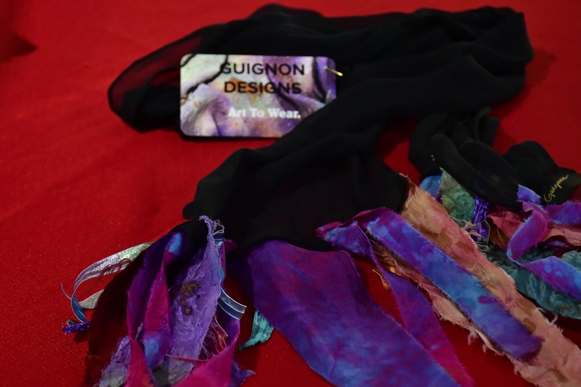 - A black scarf with colorful silk ends