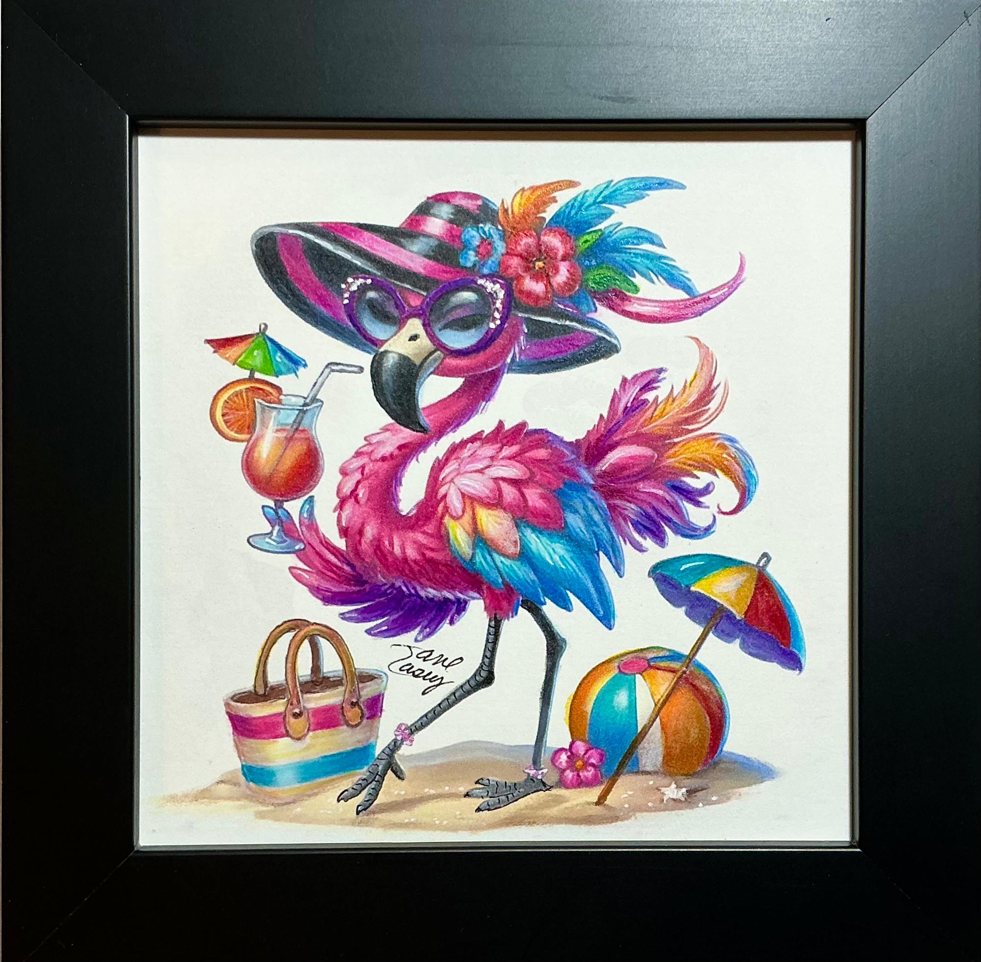 Painting on 300 lb Hot Pressed Watercolor paper, beautifully framed in a custom frame.