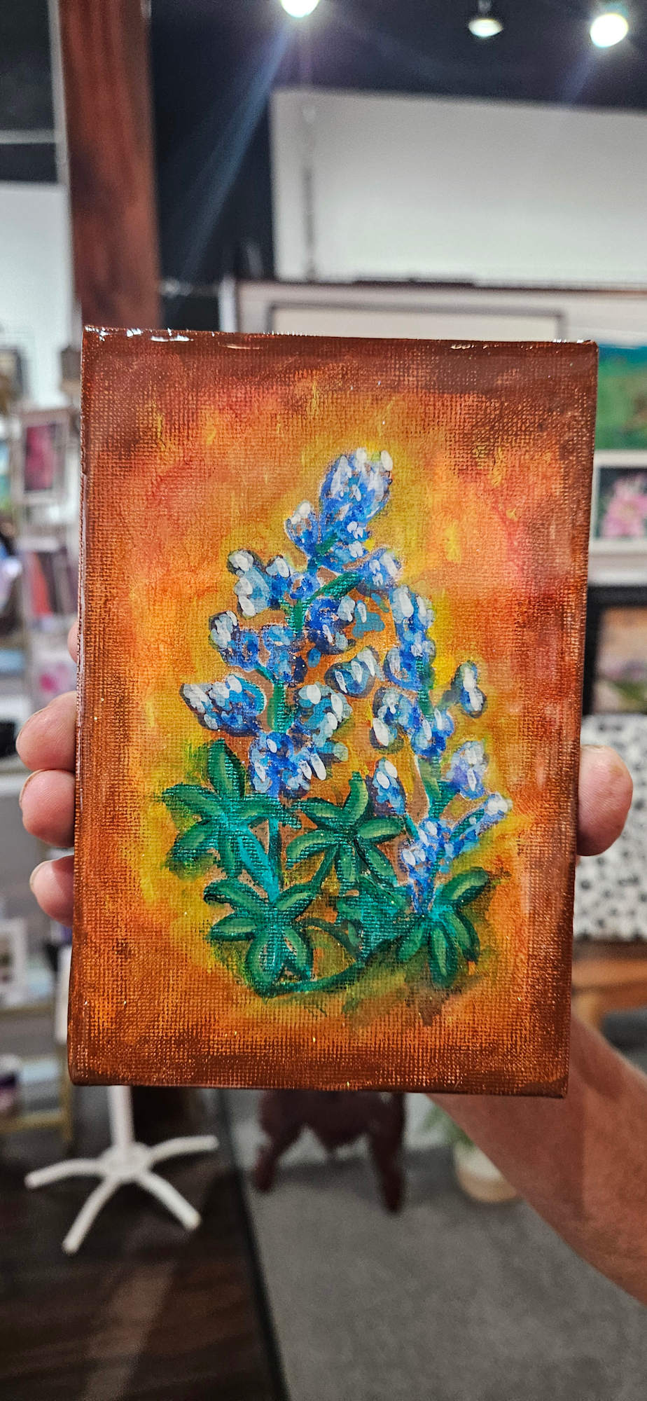 Bluebonnets painted on canvas and covered with resin