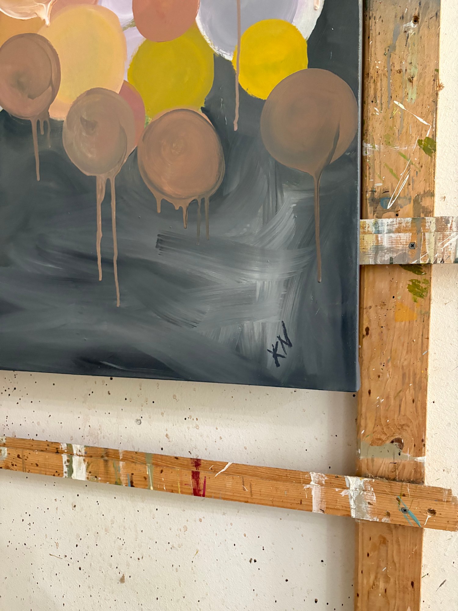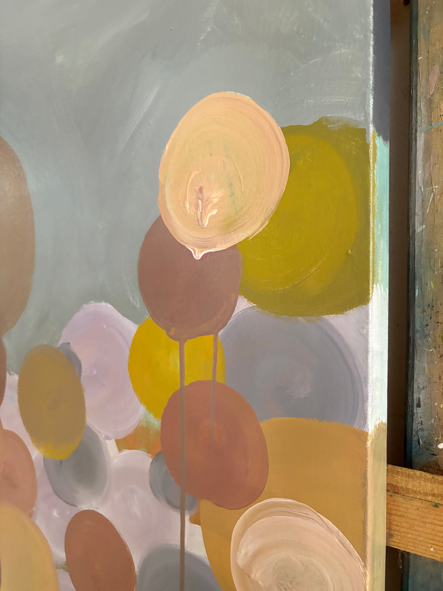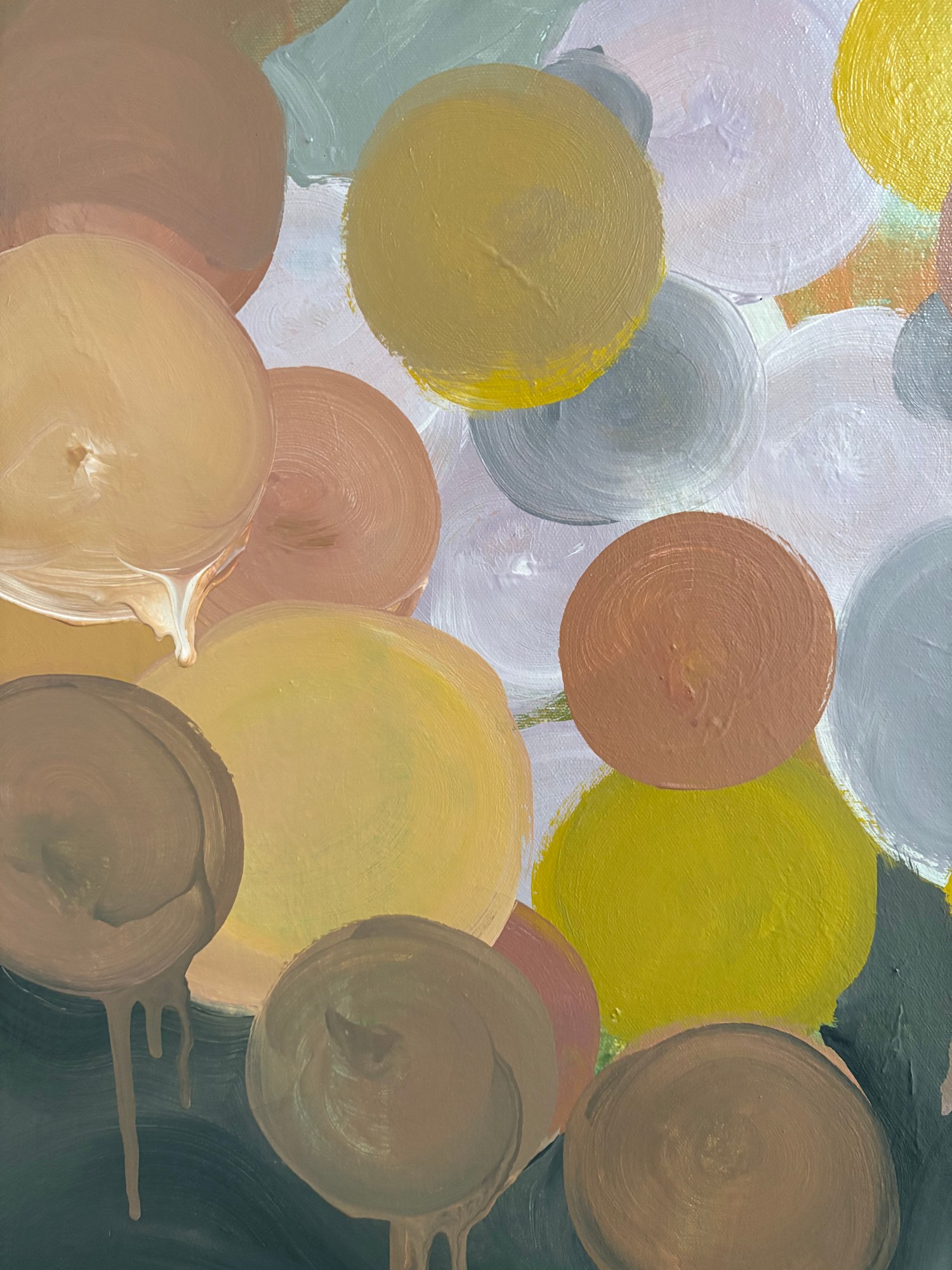 What can I say about this piece, it's fun, whimsical, and delightful. More muted colors than some of my newer work, but one of my favorites. I was just having fun in my studio this day I created it. But if I had to assign a deeper meaning to it, I would say it brings back childhood memories of bubble gum, bubble baths and blowing bubbles.