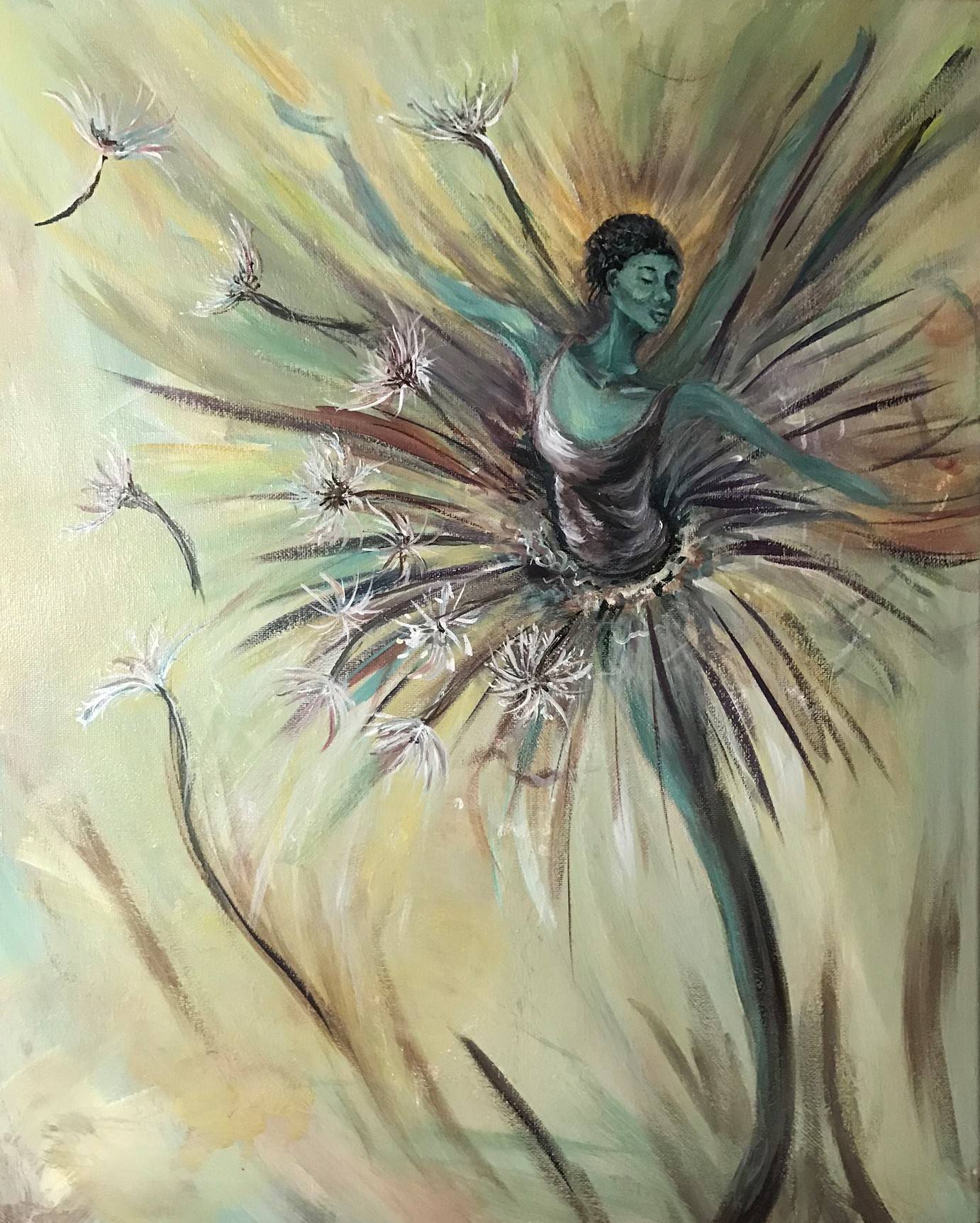 Step into a world where nature and dance intertwine in a beautiful, otherworldly display. "Dance of the Dandelion I" invites you to witness the ethereal elegance of a ballet dancer transformed into the delicate form of a dandelion. The graceful movements of the dancer are captured in exquisite detail, as she embodies the spirit of the flower, swaying and twirling with effortless grace. This stunning piece, rendered in acrylic on canvas, is a part of a new fantasy floral collection that is sure to leave you spellbound. Experience the magic of "Dance of the Dandelion I" and let your imagination soar with visions of beauty and wonder.