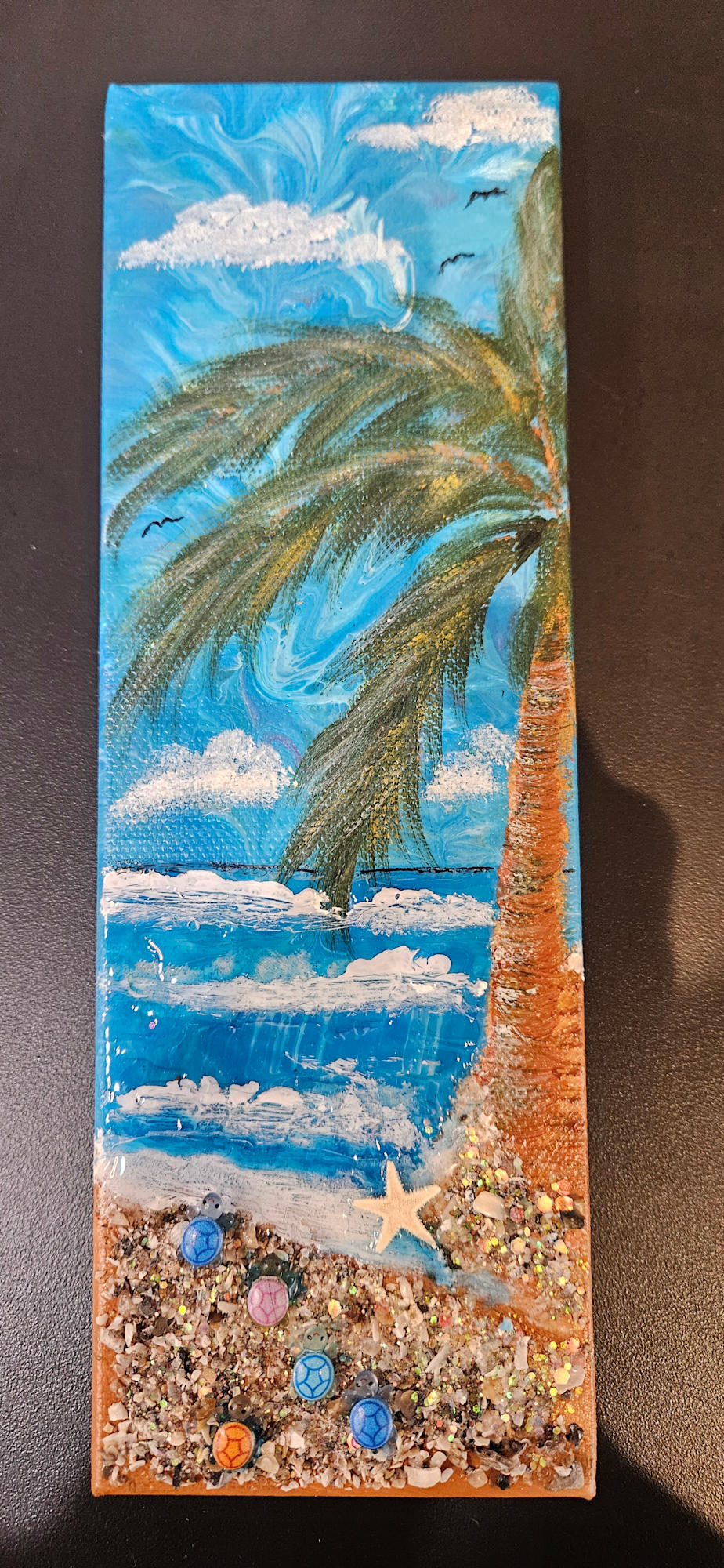Ocean scene on canvas with baby turtles and resined water
