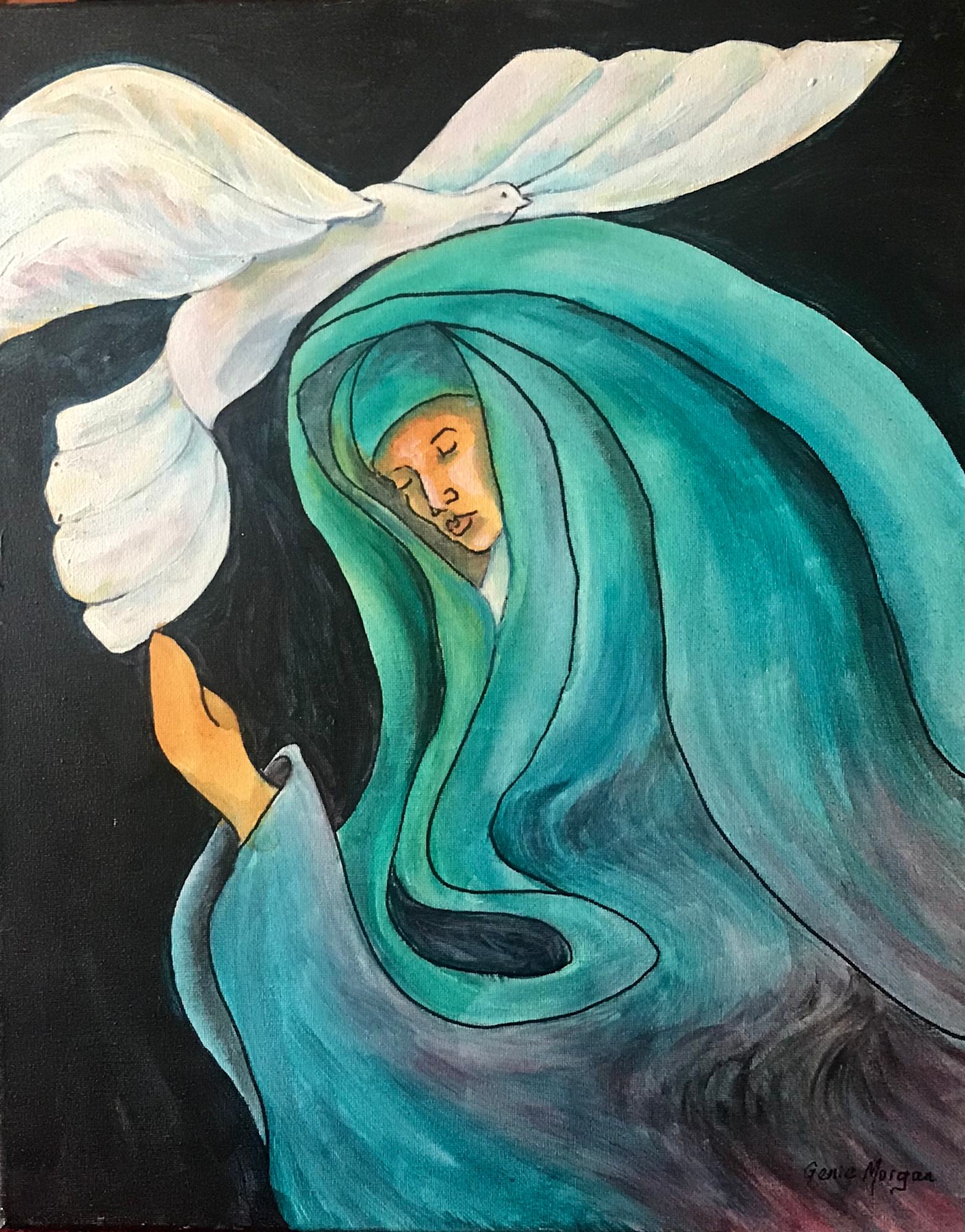 The design of this work came during a church service. I then completed the work at a later date by painting it. I often paint during services but this one was from a drawing.