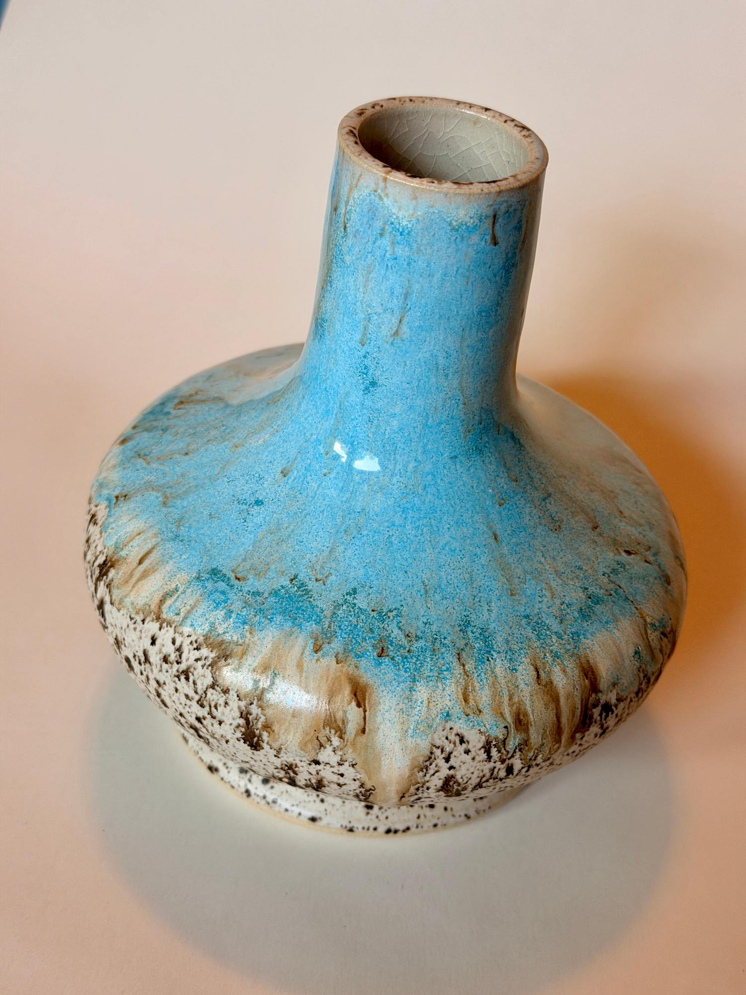 Wheel-thrown; hand-brush glazes; electric kiln fired