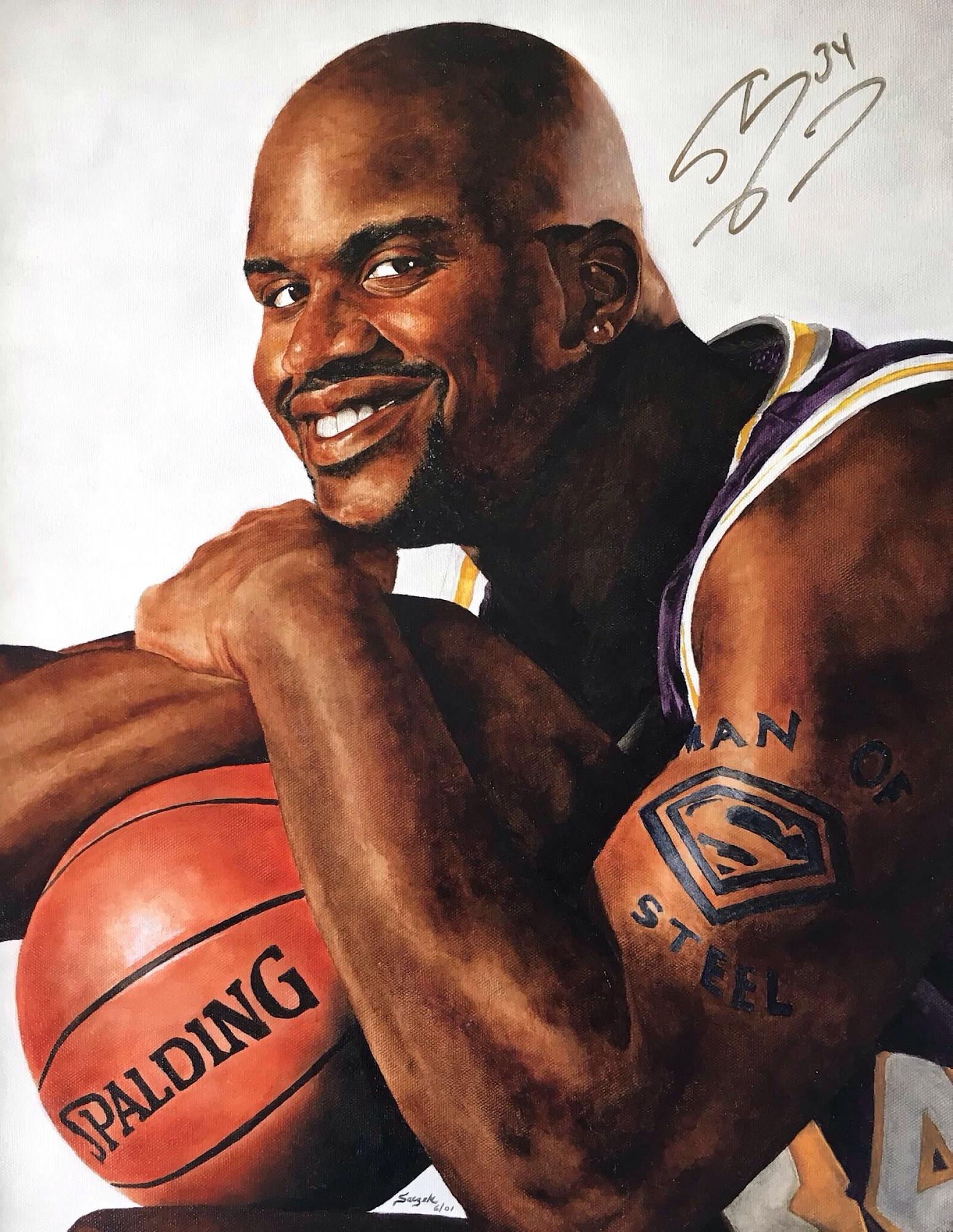 Giclee fine art canvas print from original oil painting of Shaquille O'Neal. Please note that this is a print and the signature is a reproduction of the signed original. CD
