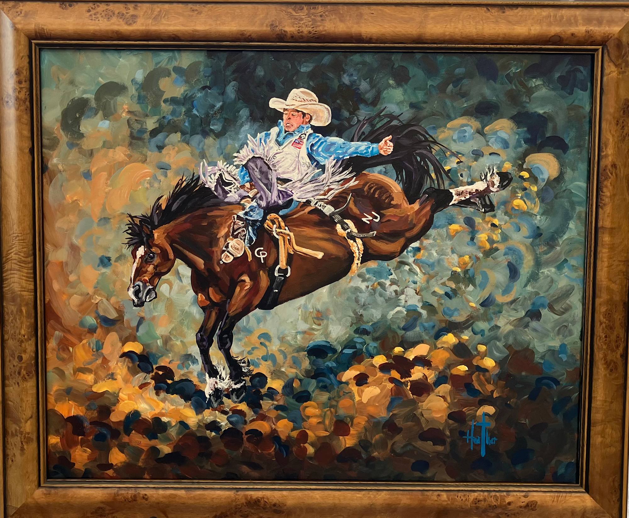Excited to have the honor to paint Waylon PRCA Professional Bareback rider from Louisiana. Talented cowboy shows so much action
