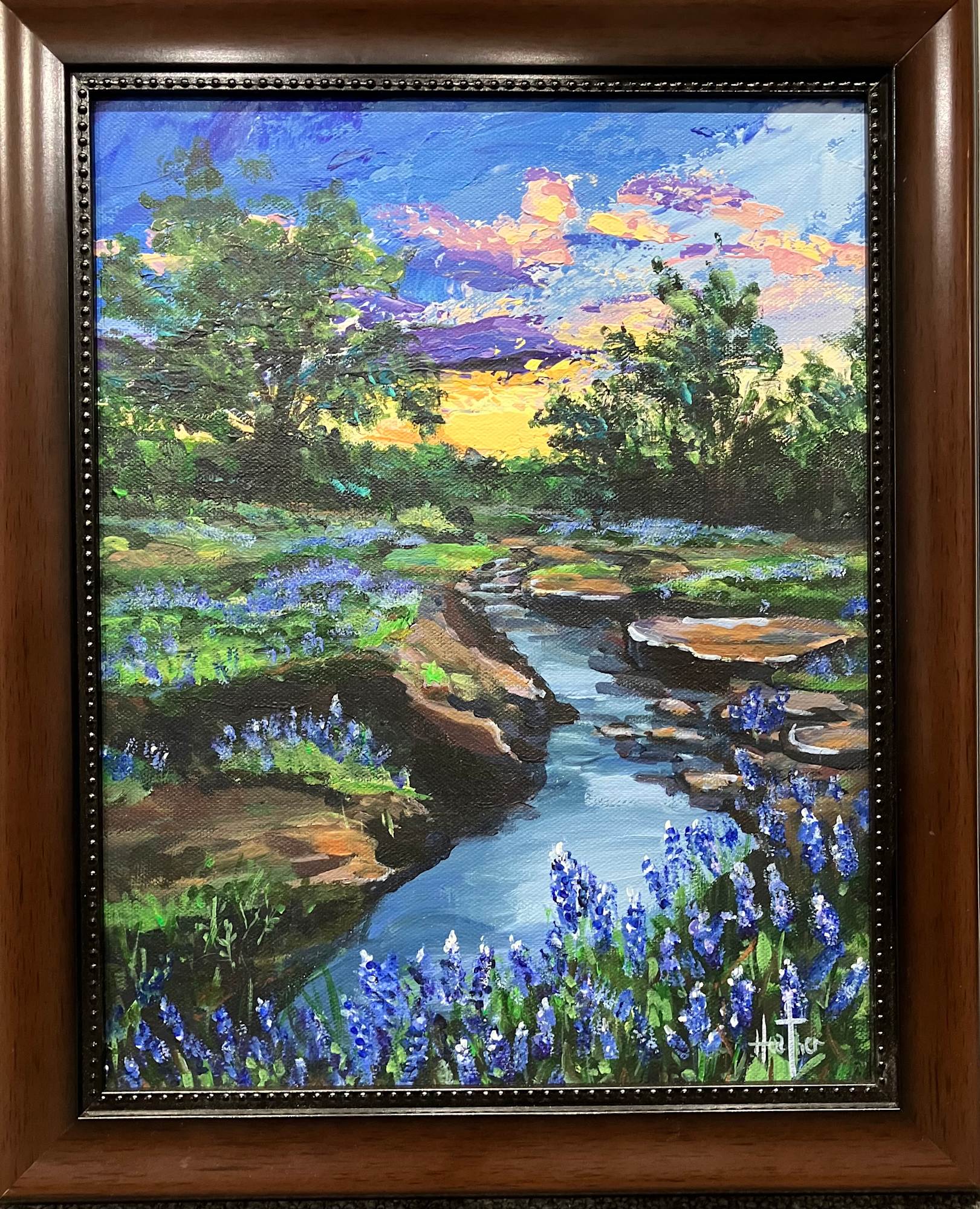 Texas in the spring brings flowing streams blue skies and blue bonnets .