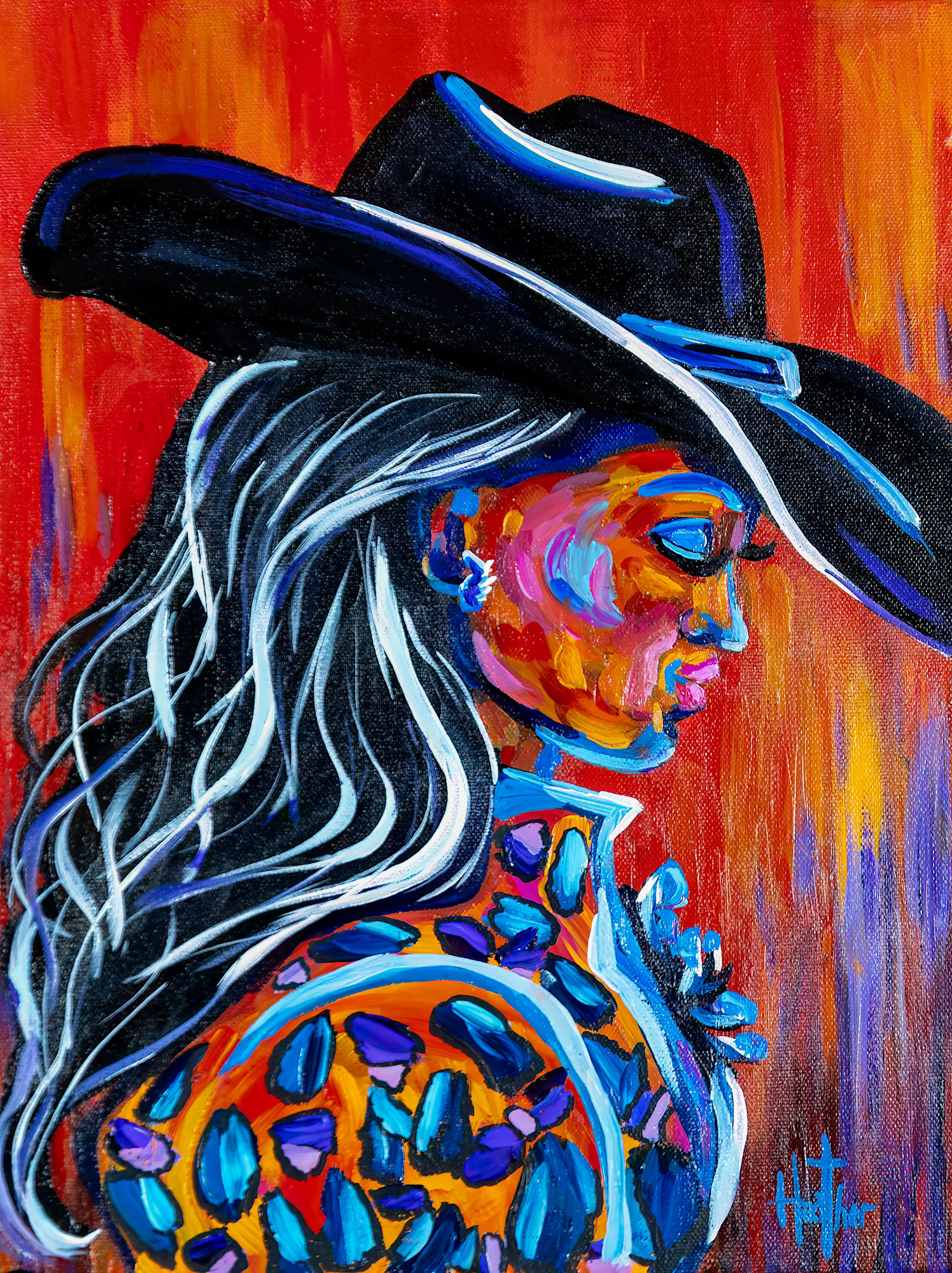 A modern cowgirl in the west bold colorful confident with grace and beauty