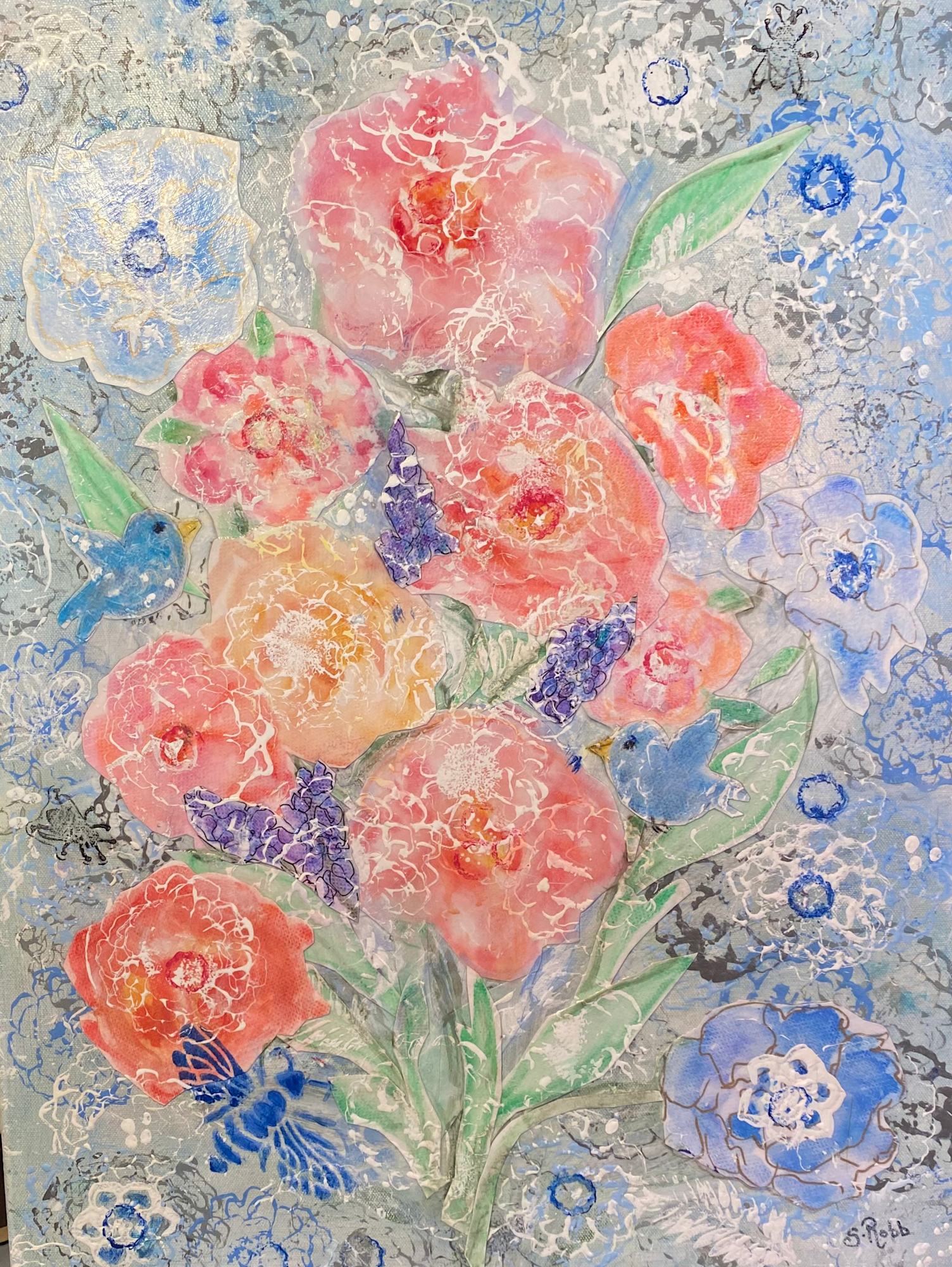Original watercolor collage on acrylic canvas