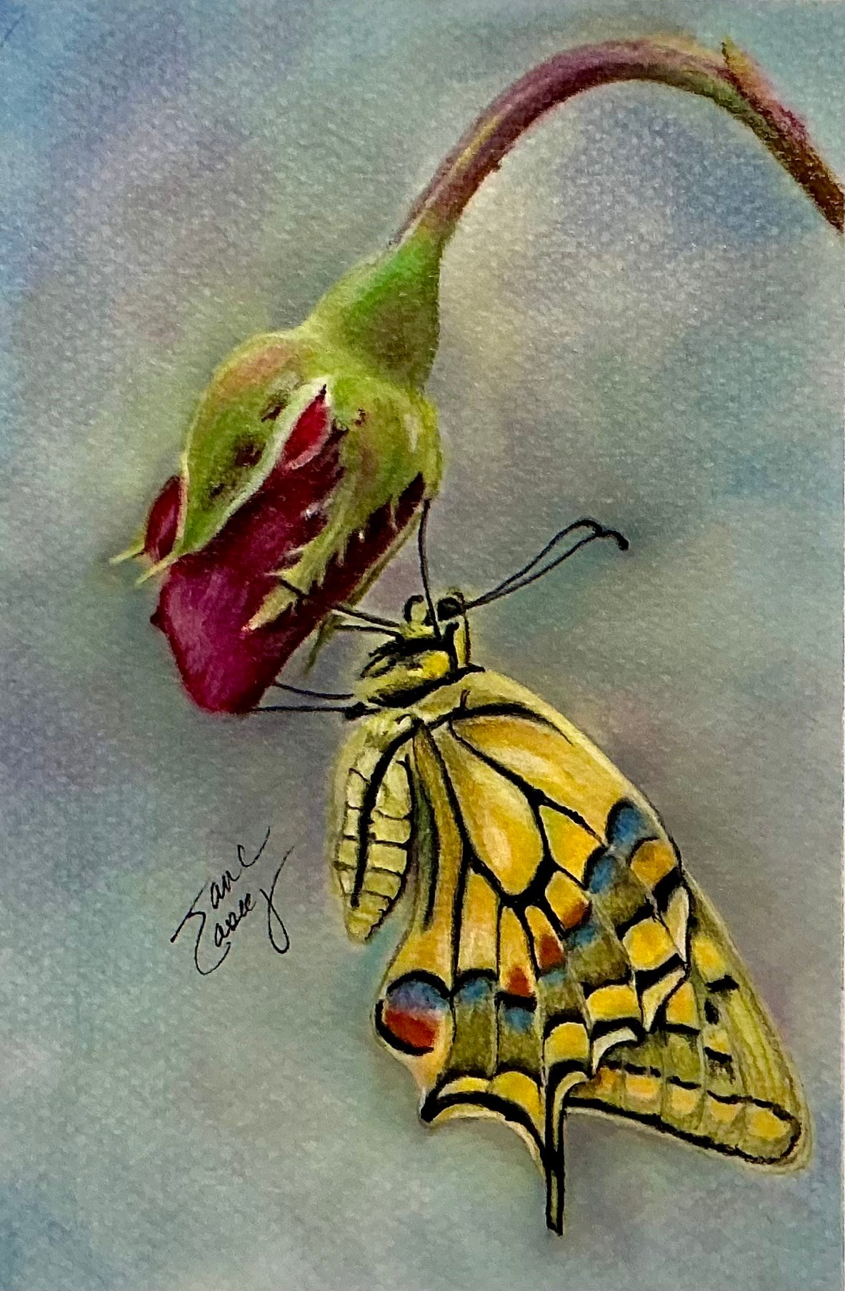 Colored Pencil on pastel paper mounted on 5x7x1.5 gallery wrapped canvas