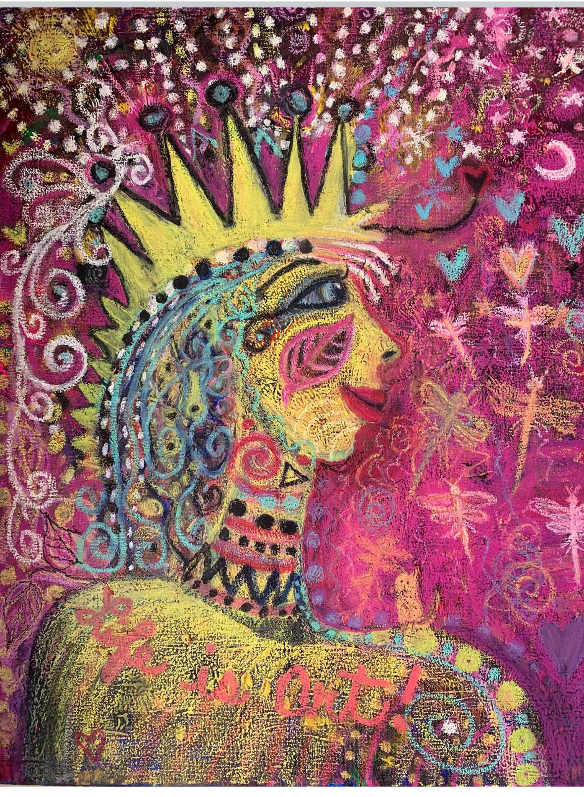 Beyond the Surface: Unveiling the symbolism of the Multicolored Muse. This piece is an invitation to explore the depths of the human experience, where the boundaries of reality and fantasy blur. Each of the elements and small details of this painting are crafted to represent the subject’s connection to nature, the Universe and the mysteries of the human heart.