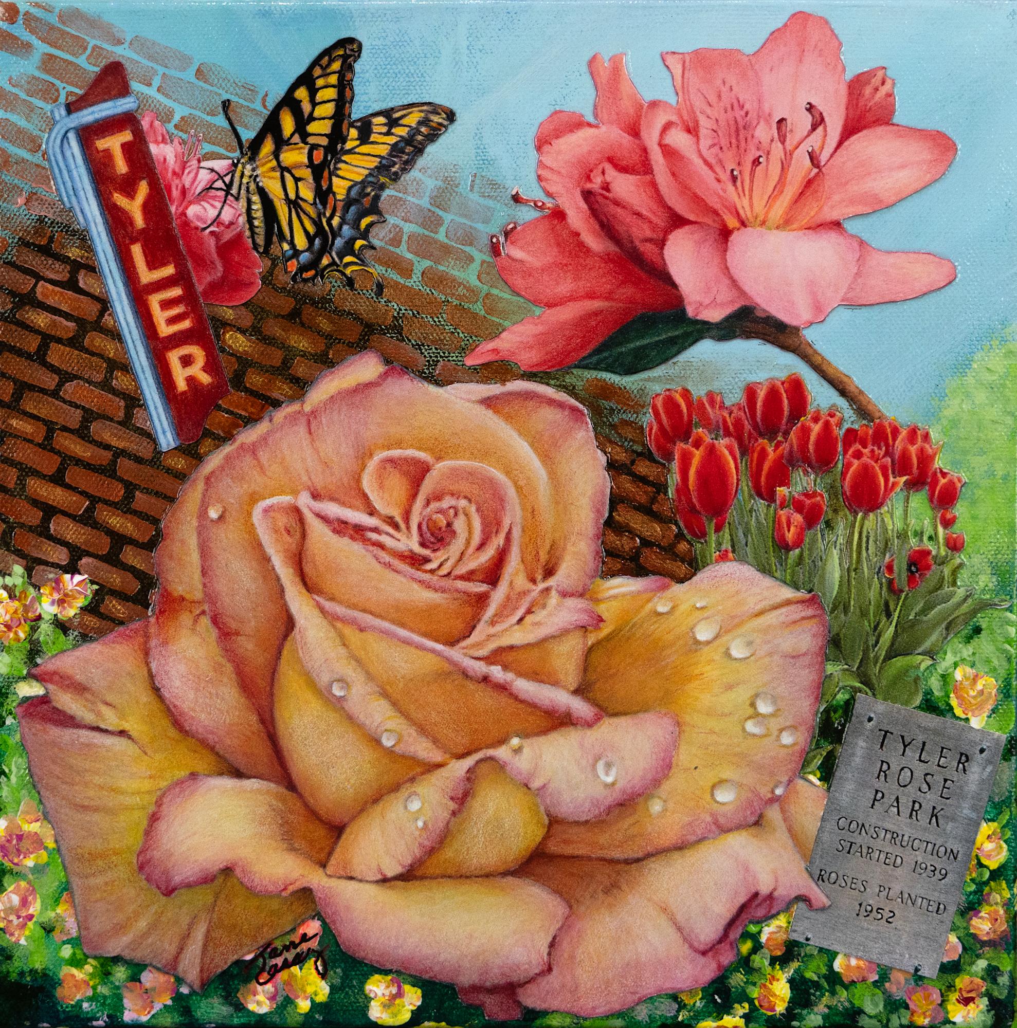 print on panel of the original collage as described as: Colored Pencil Art - cutout and mounted on a 10x10x1.5 inch Gallery wrapped canvas painted with Acrylic painted background