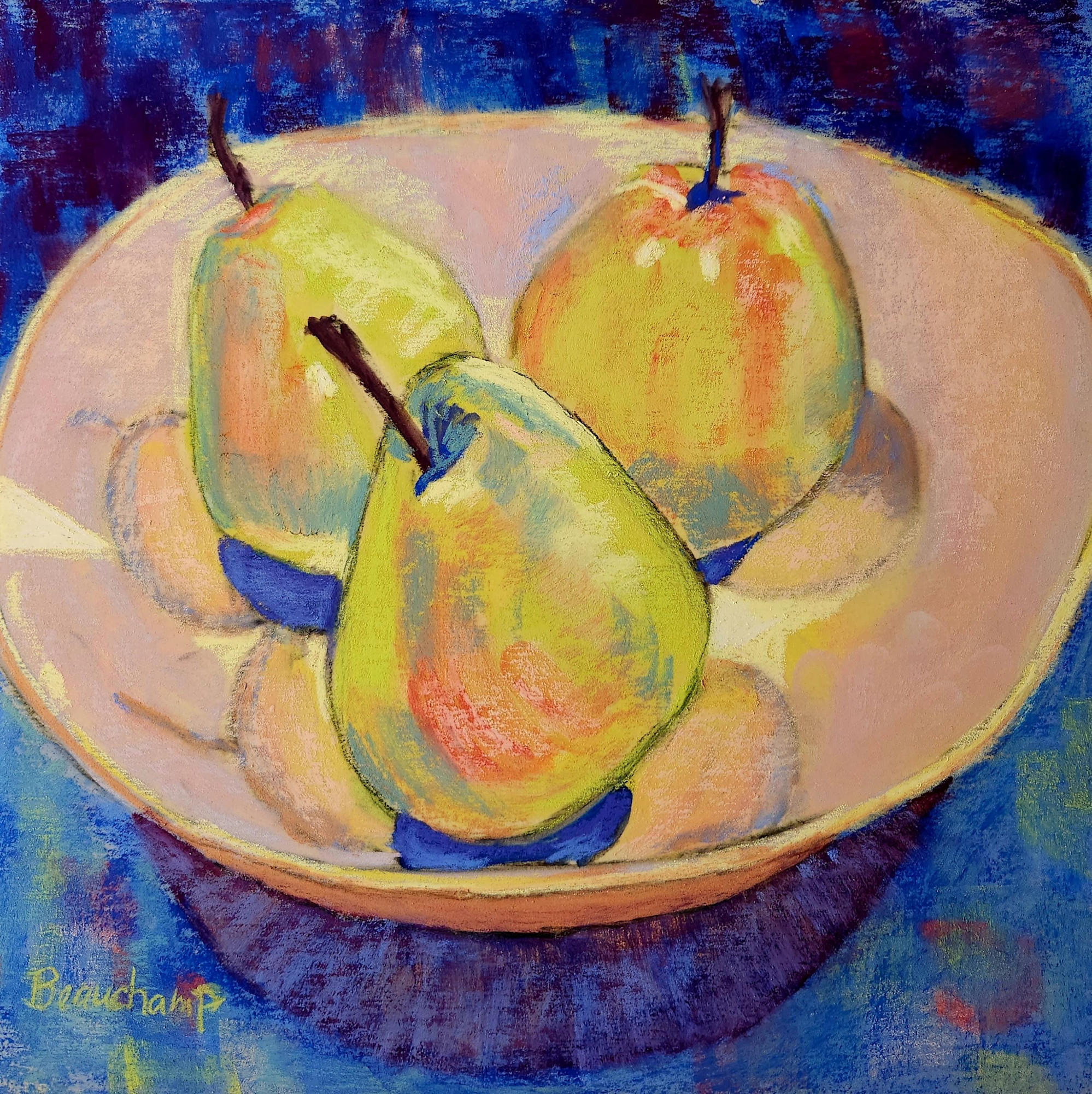 Three wild pears in a bowl