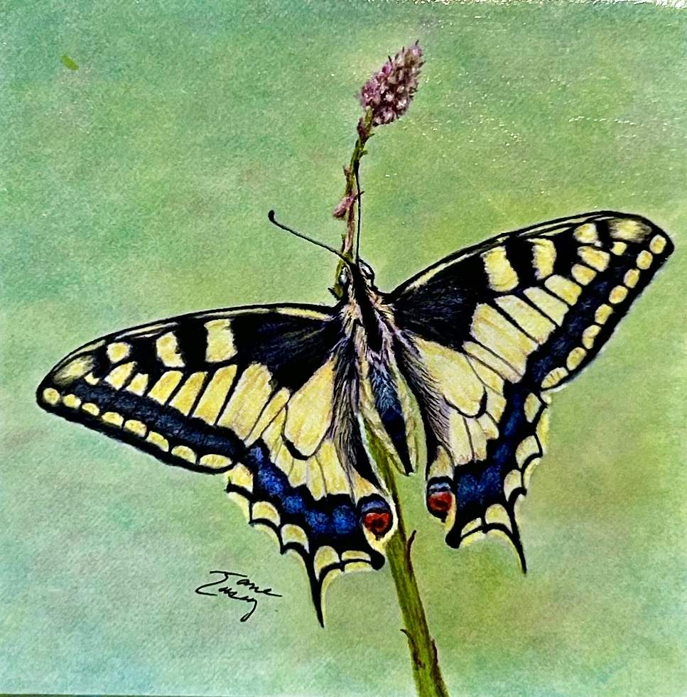 Colored pencil painting mounted on a gallery wrapped 6x6 Canvas and sealed with an acrylic varnish