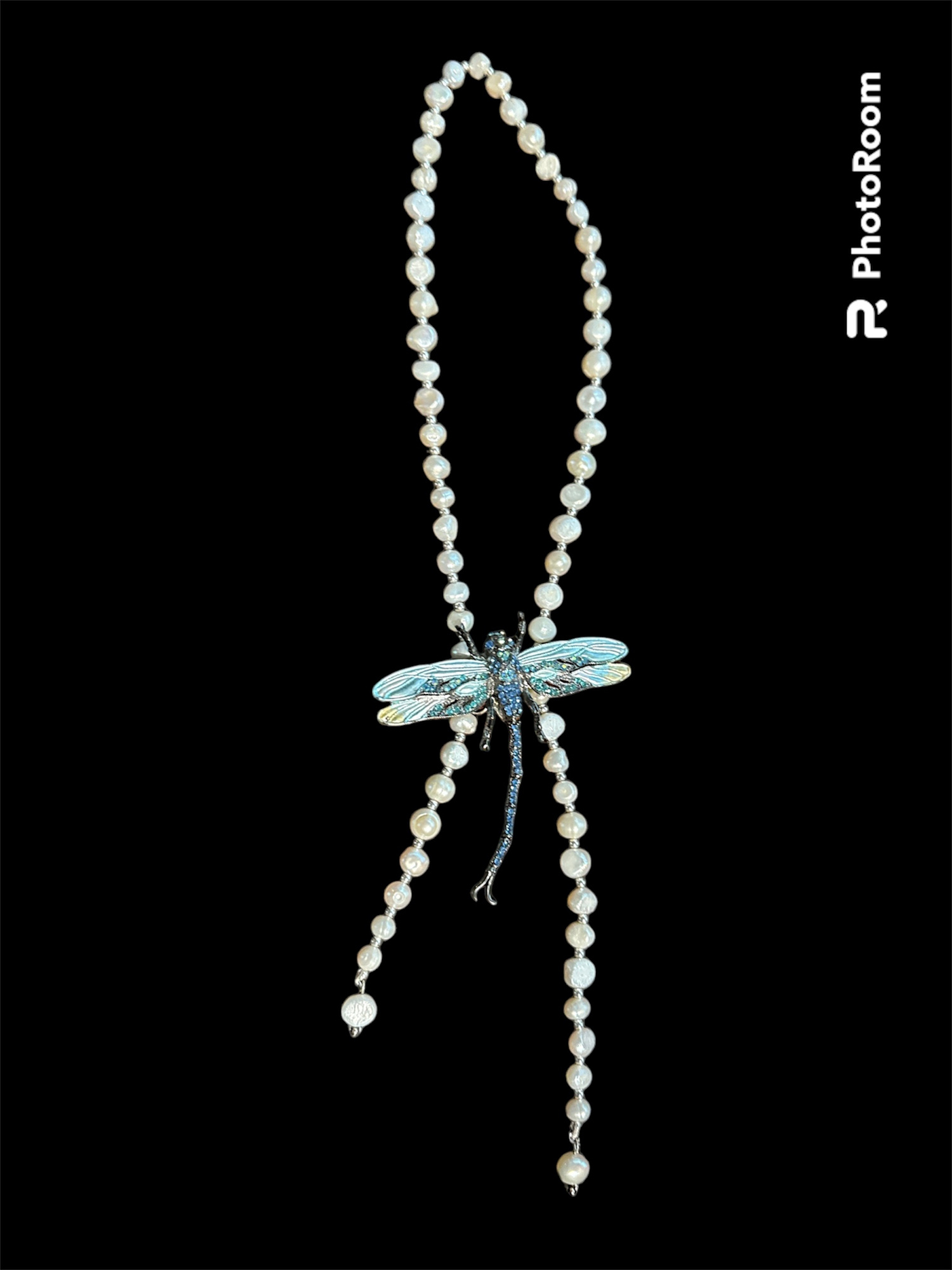 Sterling silver and pearl necklace With sparkle Dragonfly