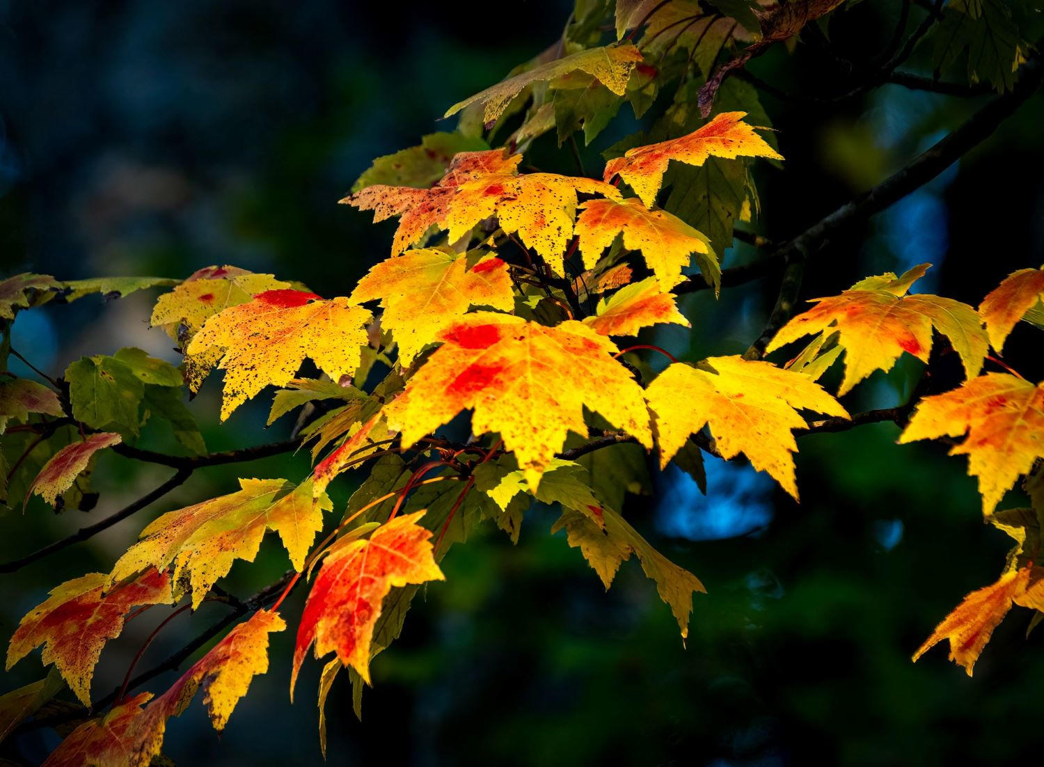 The maple leaves have a moment when both the red and yellow pigments are present for the entire tree. A beautiful sight!