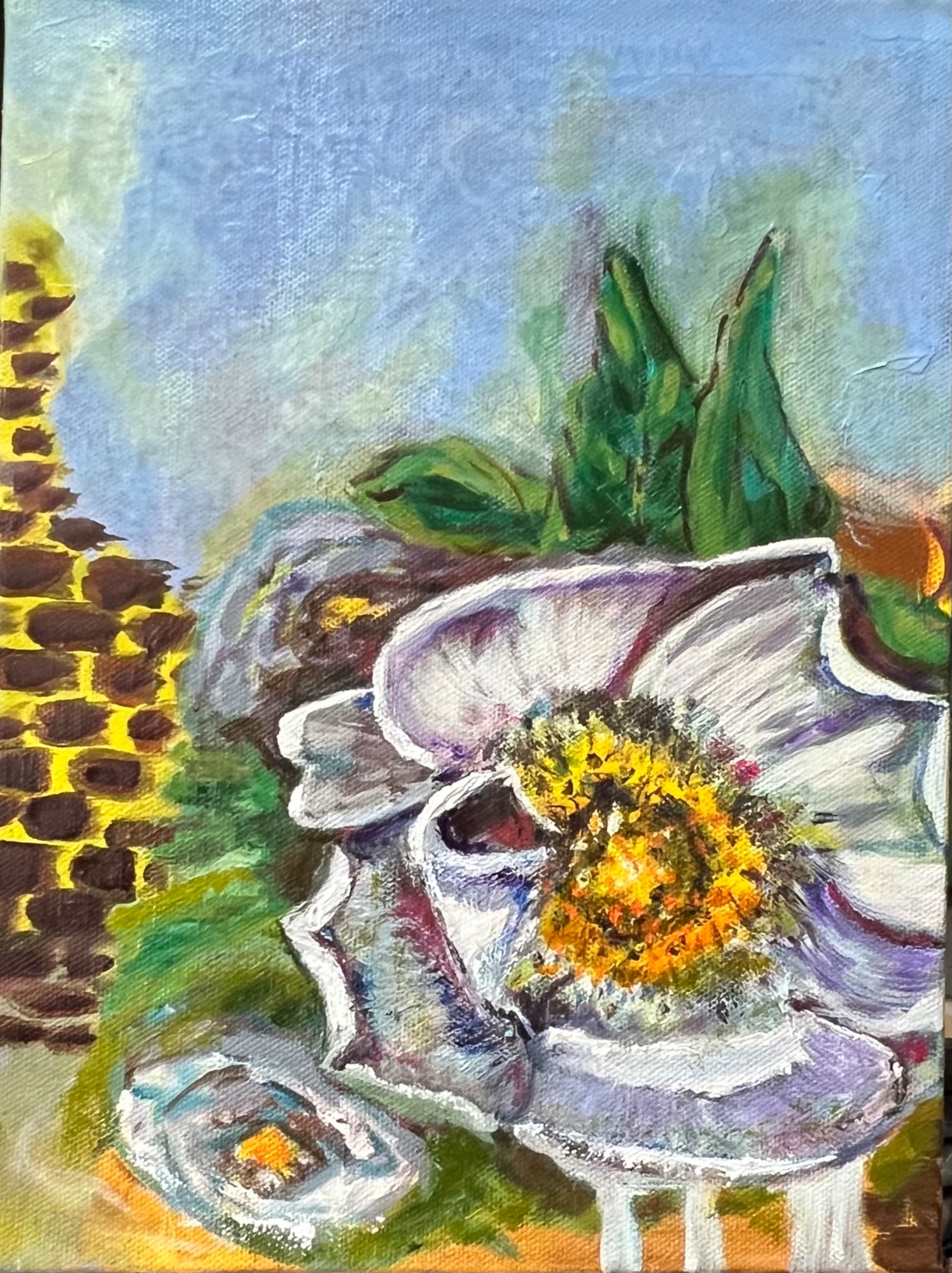 I love seeing beautiful flowers and garden walls. This flower popped over the wall to say hello while out walking one day.