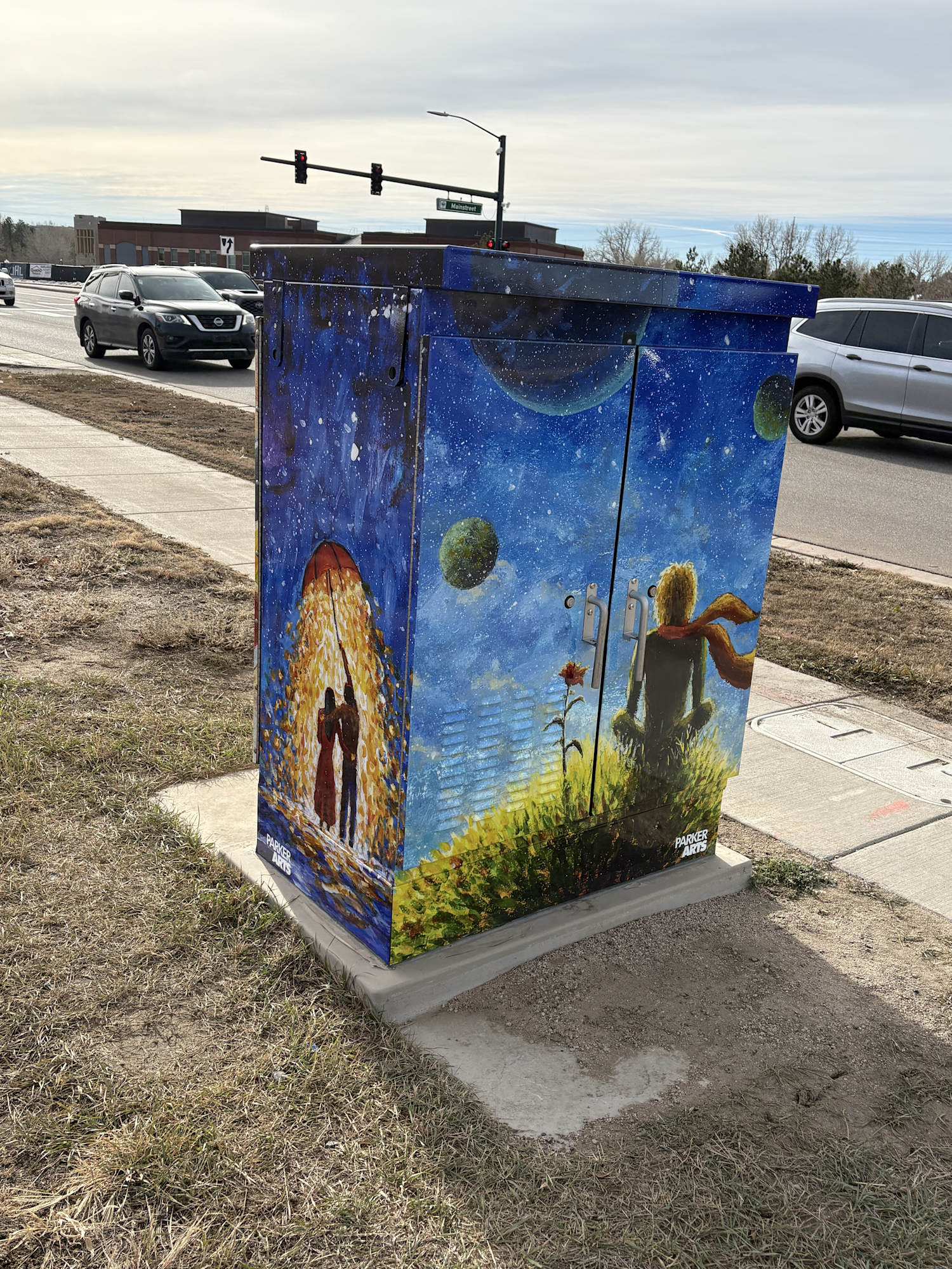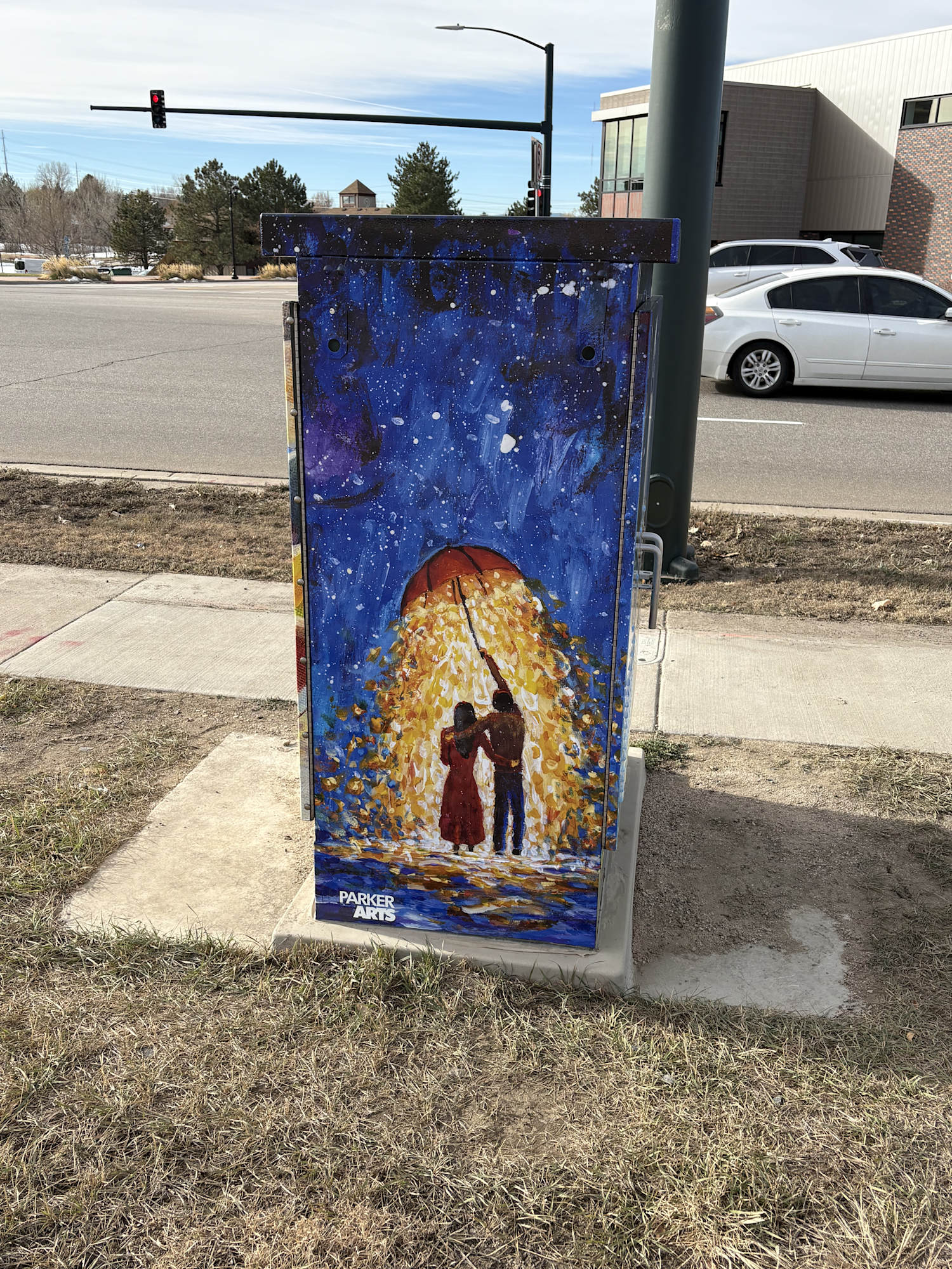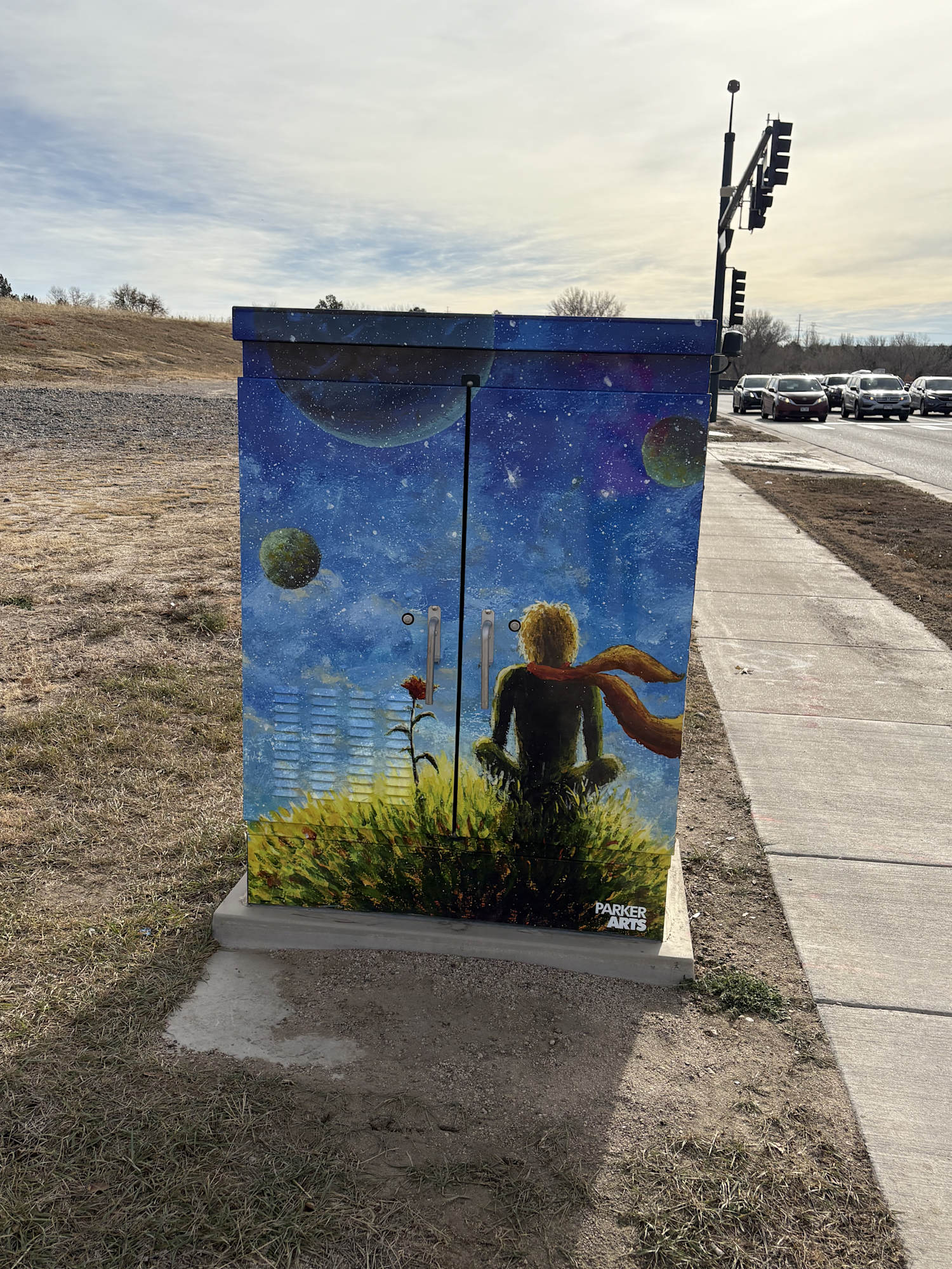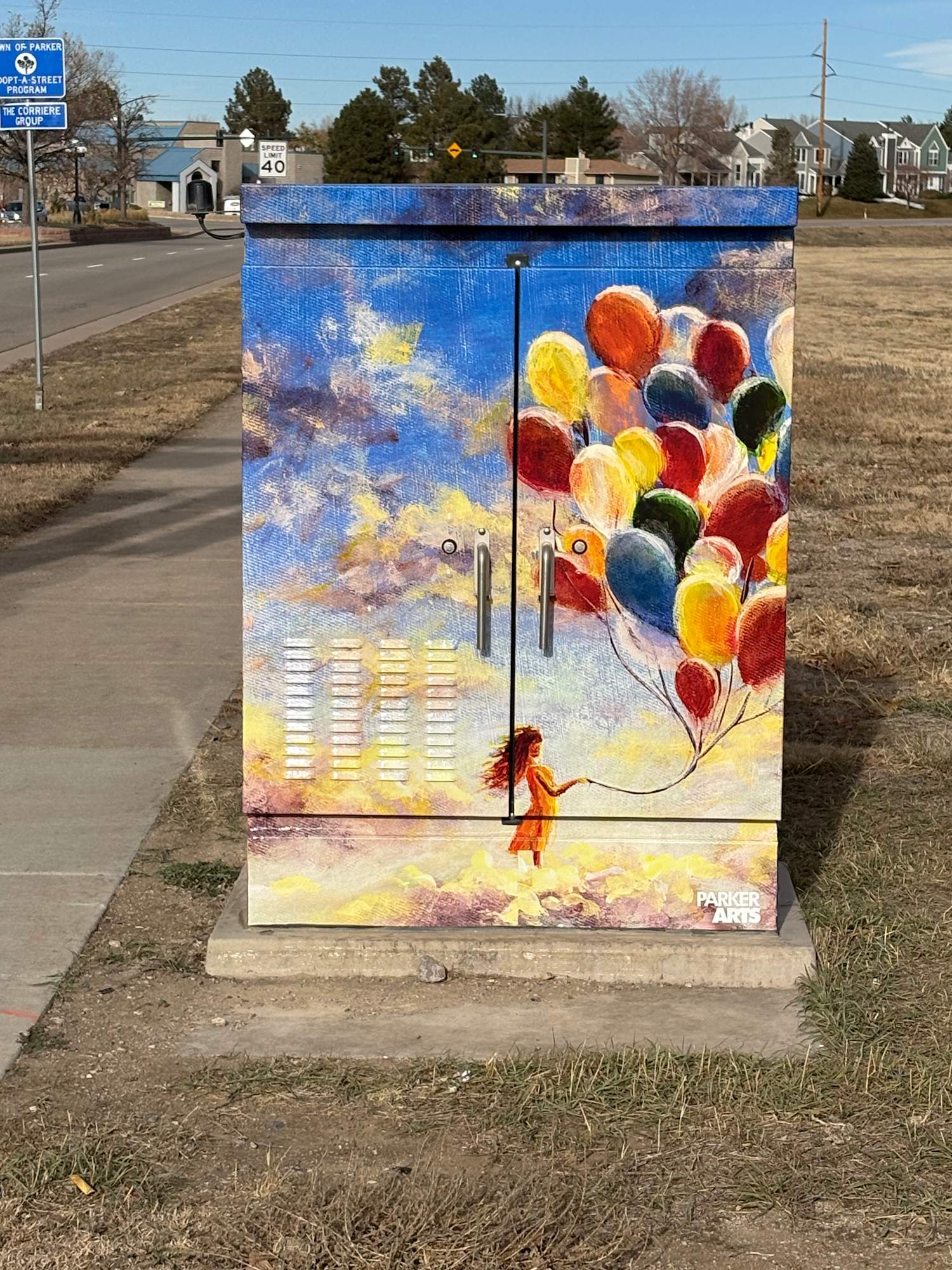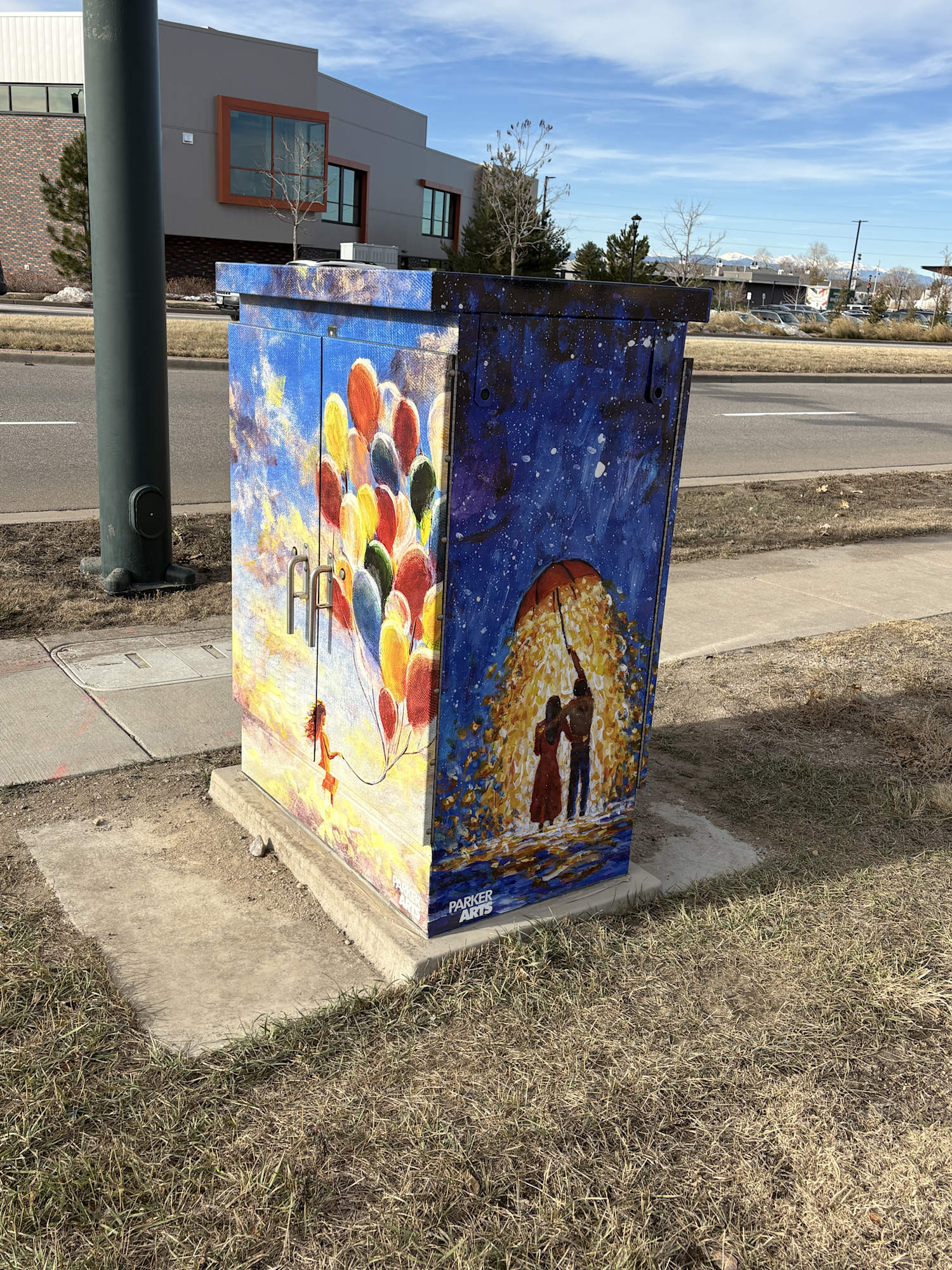 In a unique collaboration between Parker Arts, the Public Art Commission, the Town’s Public Works Department, and CORE Electric, utility boxes and traffic cabinets throughout Parker are being covered in colorful, whimsical, historic, and educational wraps designed by local and regional artists.