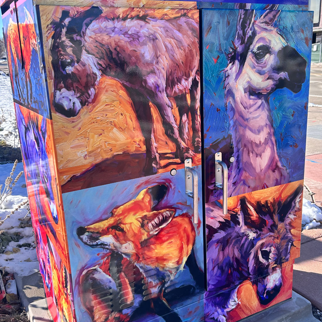 In a unique collaboration between Parker Arts, the Public Art Commission, the Town’s Public Works Department, and CORE Electric, utility boxes and traffic cabinets throughout Parker are being covered in colorful, whimsical, historic, and educational wraps designed by local and regional artists.