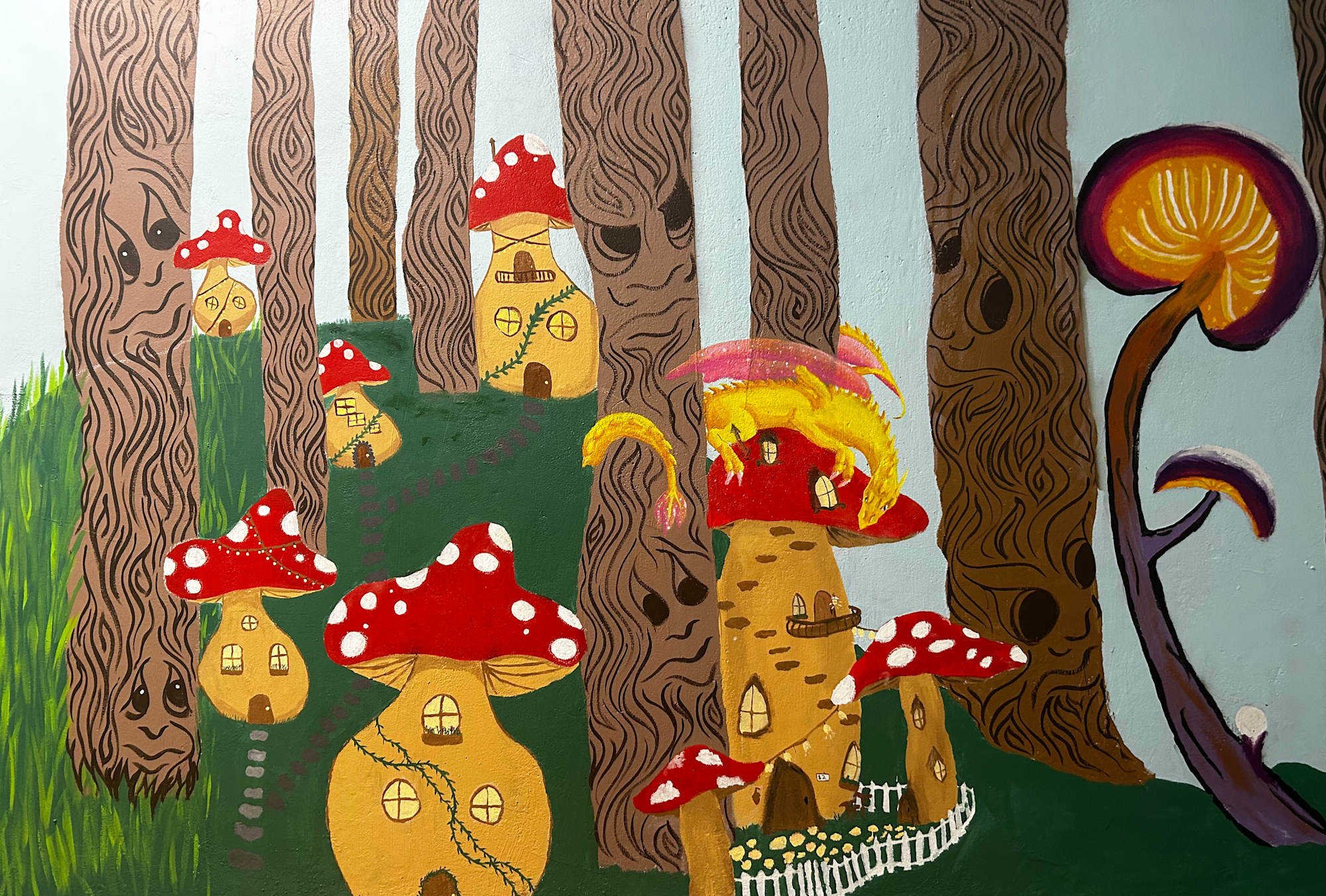 This project is a collaboration between local volunteers, the Parker Youth Commission, and Parker's Parks and Recreation and Cultural Departments. Local artist Adi Aderhold spearheaded this effort. Based on family-friendly themes of mythical creatures, the mural serves to beautify and prevent graffiti tagging inside the tunnel. In its completion, the mural expands the length of 165 feet!