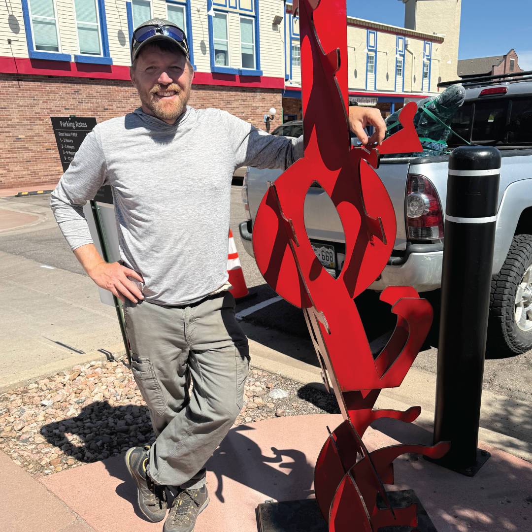 Joe shares that his work focuses on the dichotomy of organic and human-made shapes existing together. “I find it reassuring that mathematic geometry and organic shapes can exist together, like a perfectly smooth road winding through the jagged mountains.” He adds that recently, he’s been drawn to sculpting large words and embraces that concepts of opposites can exist together in the same person or society. “Someone can have LOVE and FEAR at the same time, and I find that a very useful conversation.”