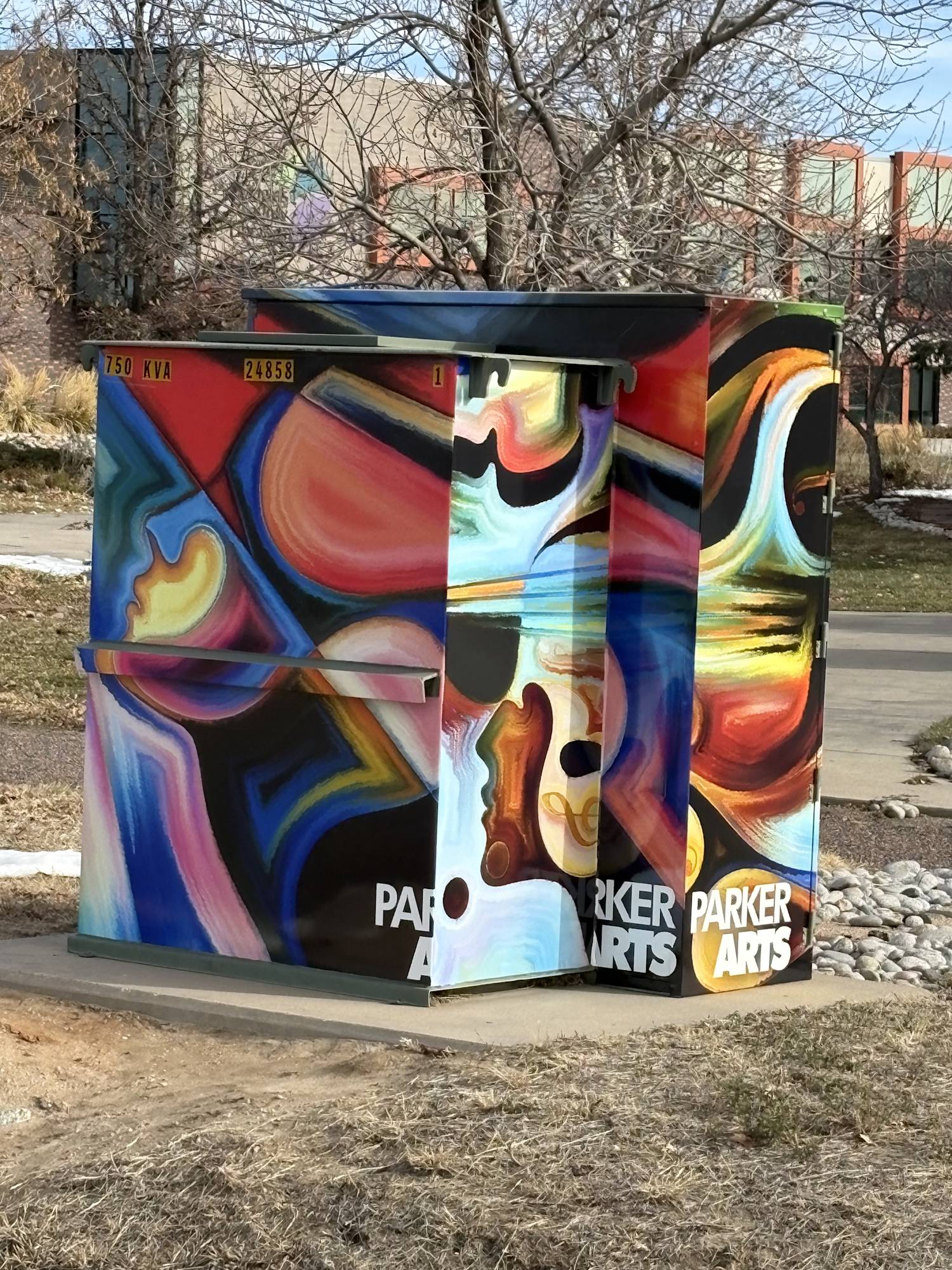In a unique collaboration between Parker Arts, the Public Art Commission, the Town’s Public Works Department, and CORE Electric, utility boxes and traffic cabinets throughout Parker are being covered in colorful, whimsical, historic, and educational wraps designed by local and regional artists.