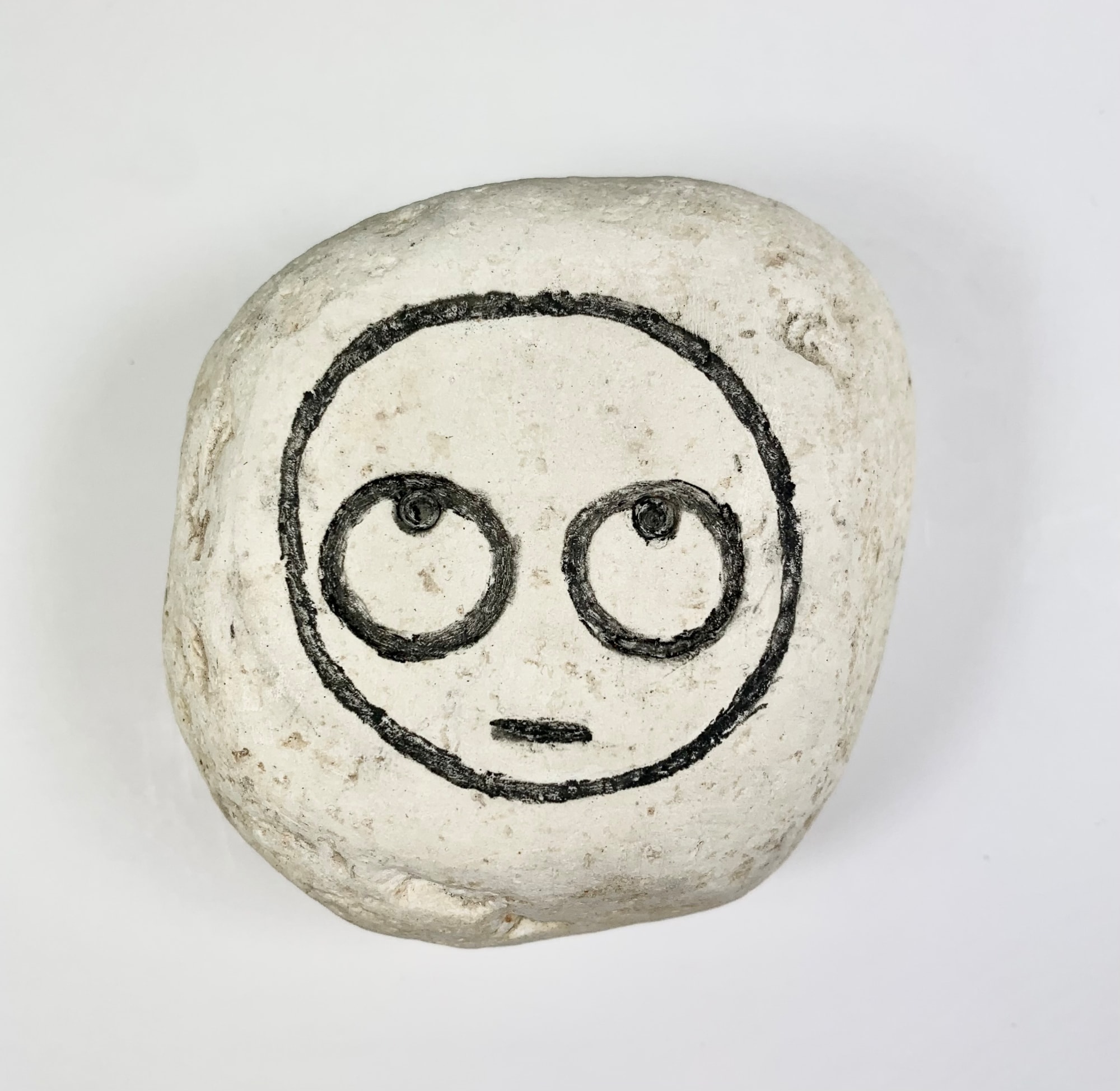 While working and considering the permanence of stone, I thought about the ephemerality of the modern world. Trails of existence, written in light. Our documents, our photos, so subject to error, so likely to vanish. I saw this most clearly when considering emoji — little icons, cartoon faces meant to represent expressions of emotion and judgment. I brought some of the stones into my studio and carved into them these symbols of temporary modernity. I thought about some future archaeologist sifting through our rubble and finding one of these carved stones, long after emoji and the reasons for them have ceased to exist.