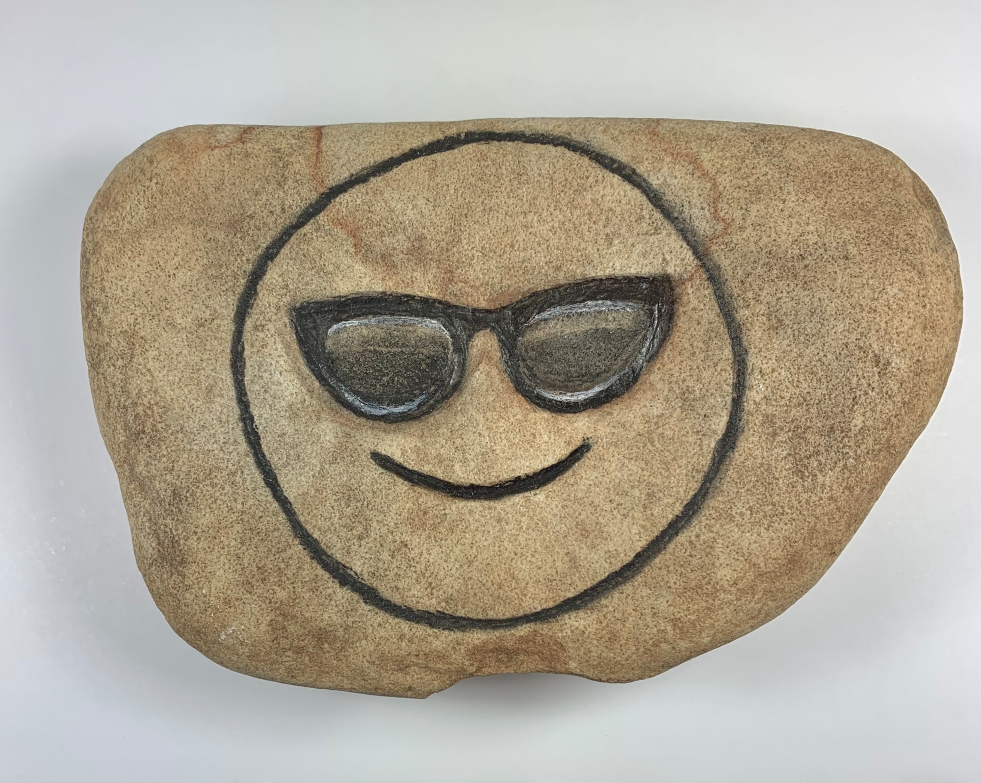 While working and considering the permanence of stone, I thought about the ephemerality of the modern world. Trails of existence, written in light. Our documents, our photos, so subject to error, so likely to vanish. I saw this most clearly when considering emoji — little icons, cartoon faces meant to represent expressions of emotion and judgment. I brought some of the stones into my studio and carved into them these symbols of temporary modernity. I thought about some future archaeologist sifting through our rubble and finding one of these carved stones, long after emoji and the reasons for them have ceased to exist.