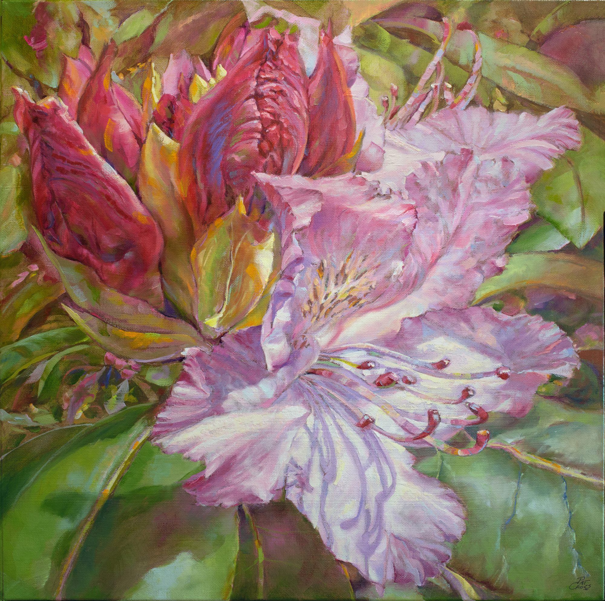 Now Available! Original oil painting by Pat Cross titled Budding Rhododendron.