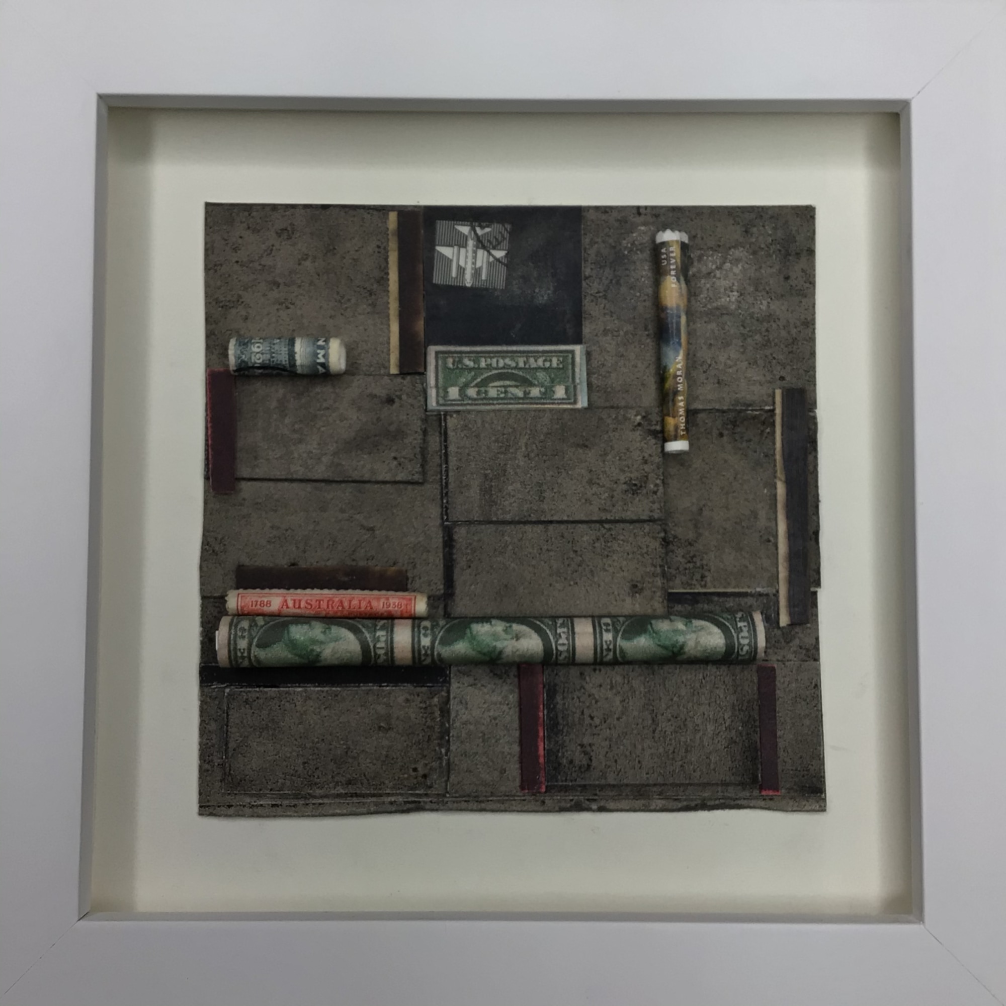 US Postage 1 cent, rolled postage stamps, paper, paint