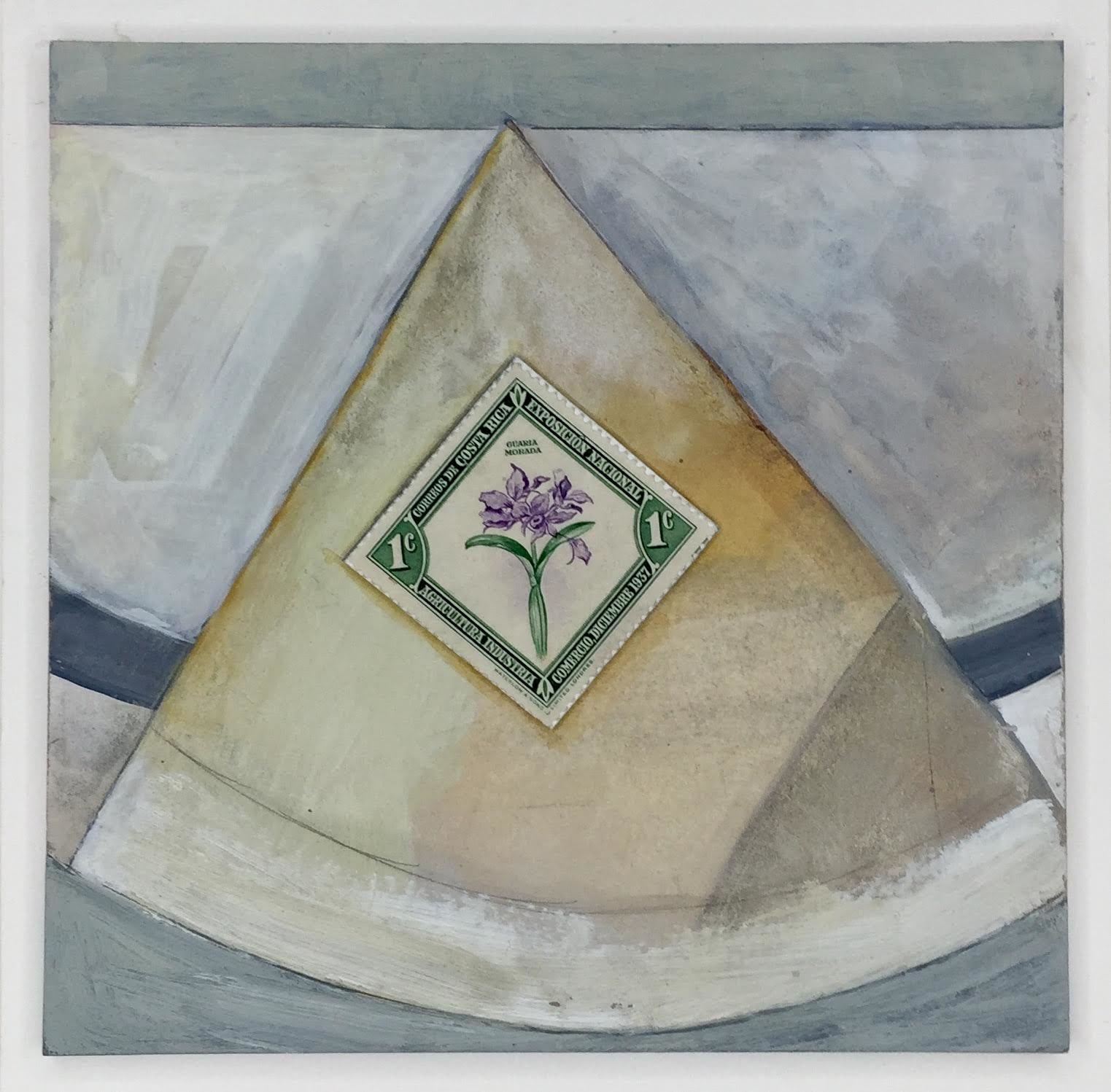 1 cent Costa Rica Stamp from 1937 of Iris, acrylic paint on paper board