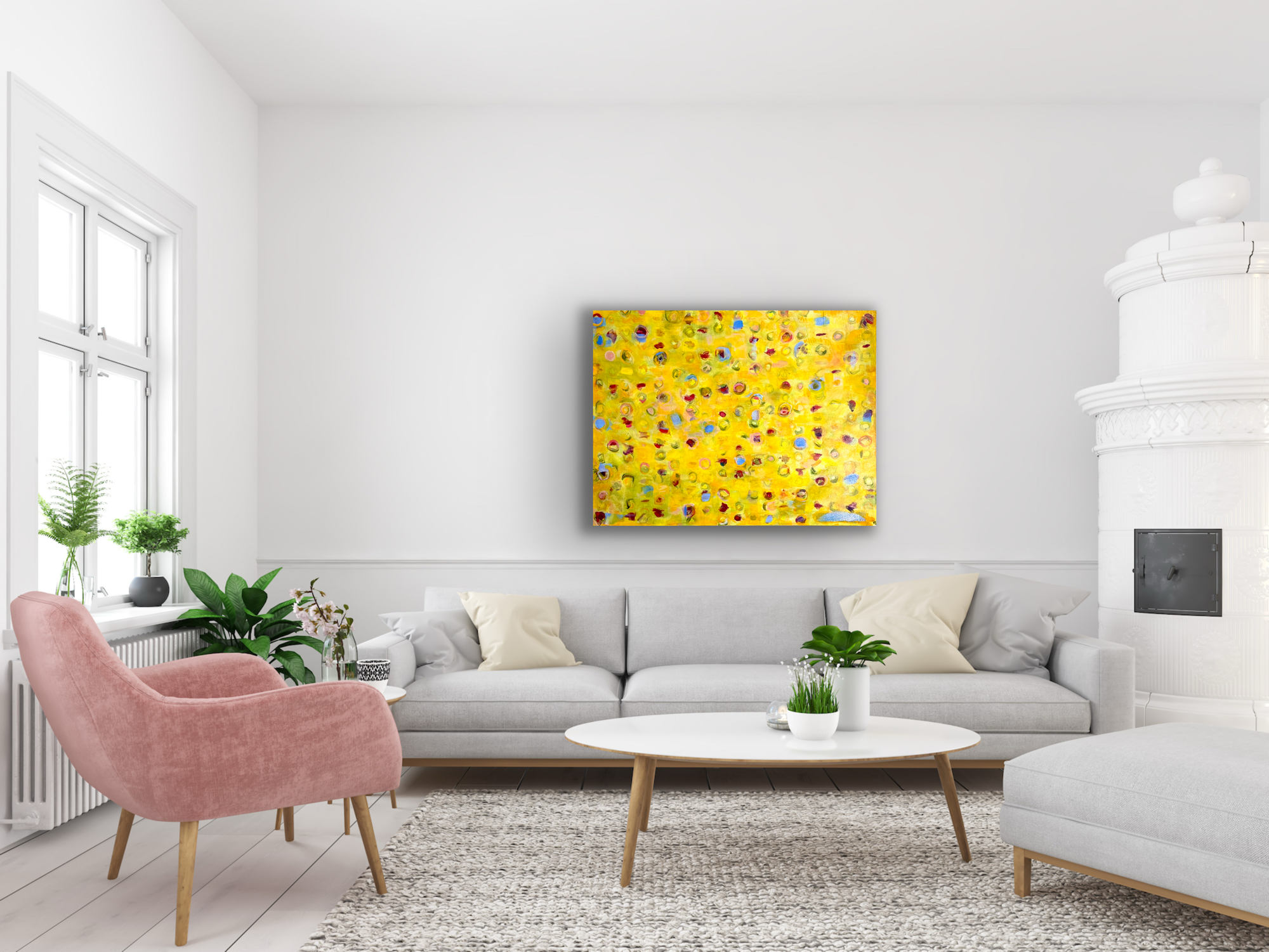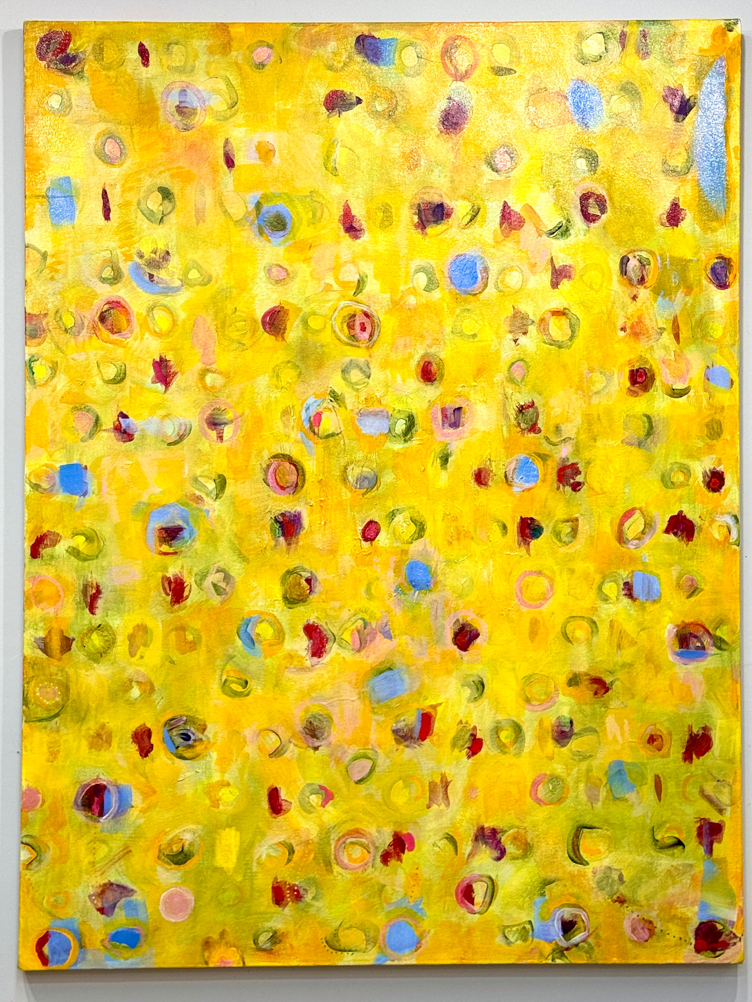 MessageSubmerged communicates through a gestural, intuitive, visual language. Using irregular-patterns and a high-key palette, the painting is about mark-making with an emphasis on painterliness, texture, and color relationships.