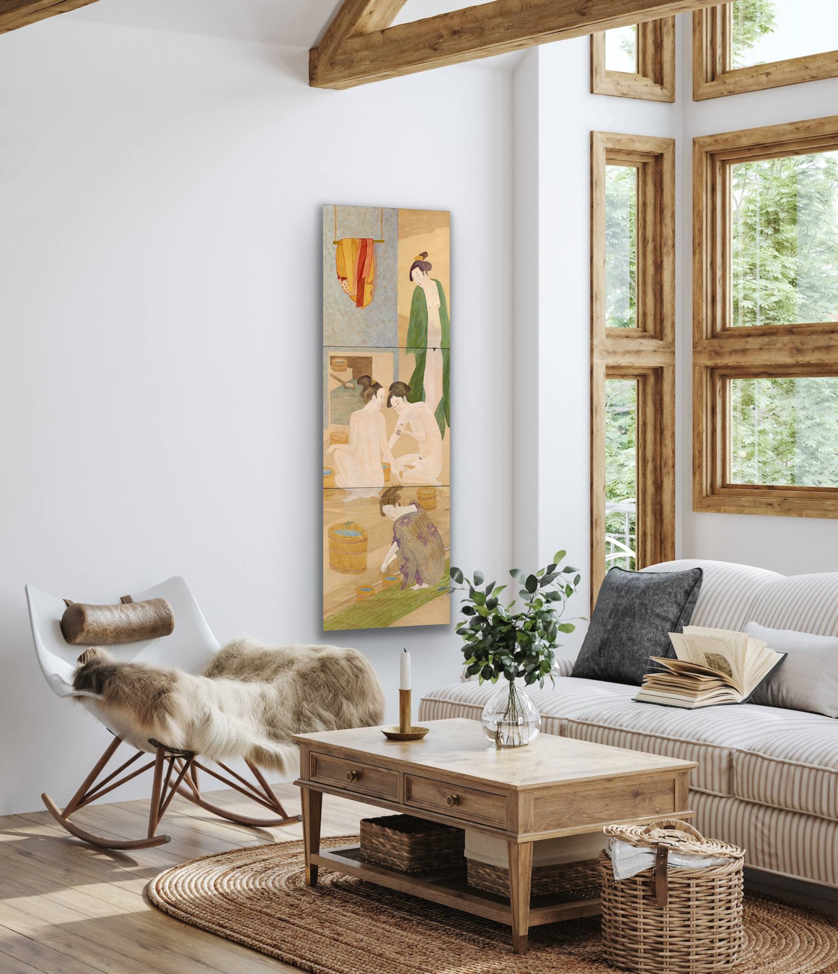 MessageThis Giclee is printed from my original painting, the Japanese Bath, a three-part ‘triptych’ on Birch panels.