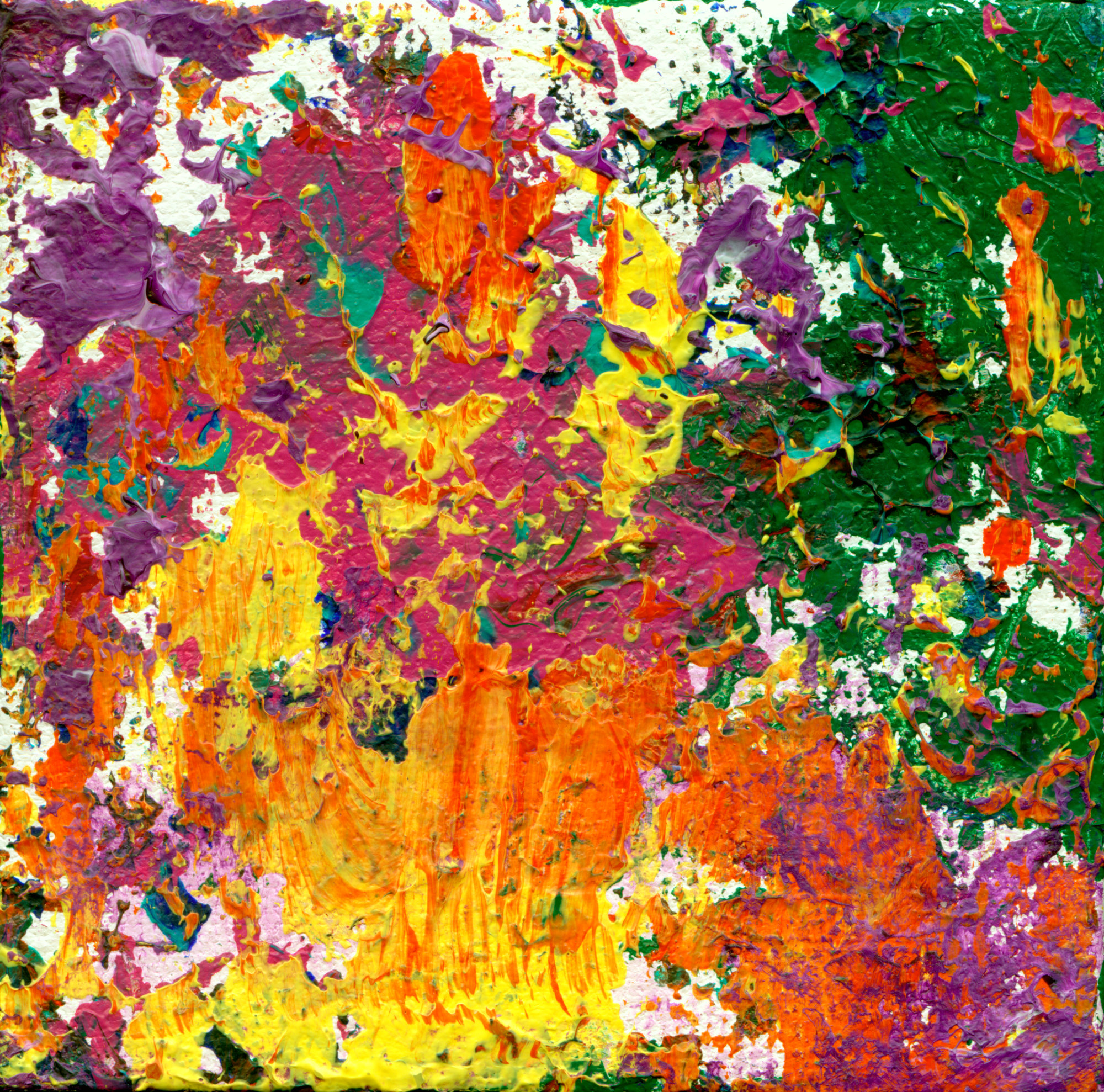 What a shift in colors! In Paradigm Shift, the last of the base colors of the earlier members of the Cold Spectrum series seems to be overwhelmed by the summery colors of reds, oranges, yellow and the tiny bit of purple has begun to emerge as an important focus.