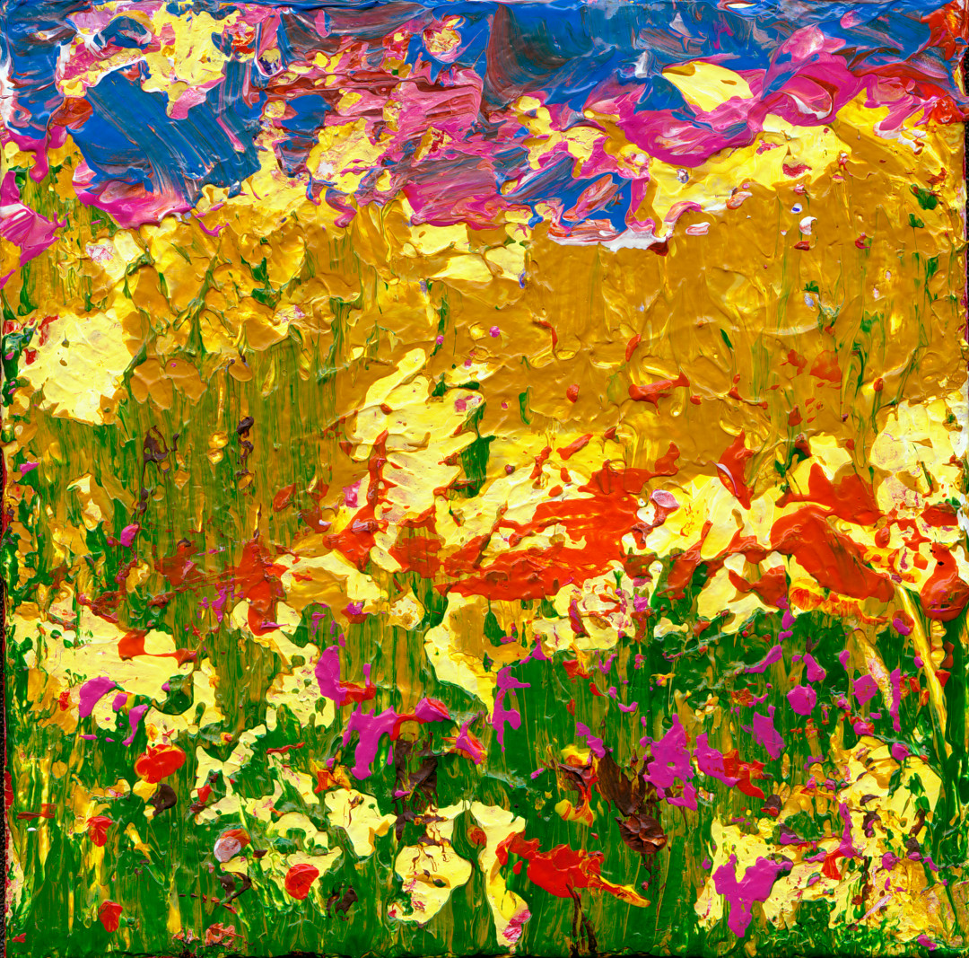 'Flowers and Grasses" is a small work of intuitive art. There are 2 magnets in the stretchers. Now you can turn your 'fridge into an art display area.