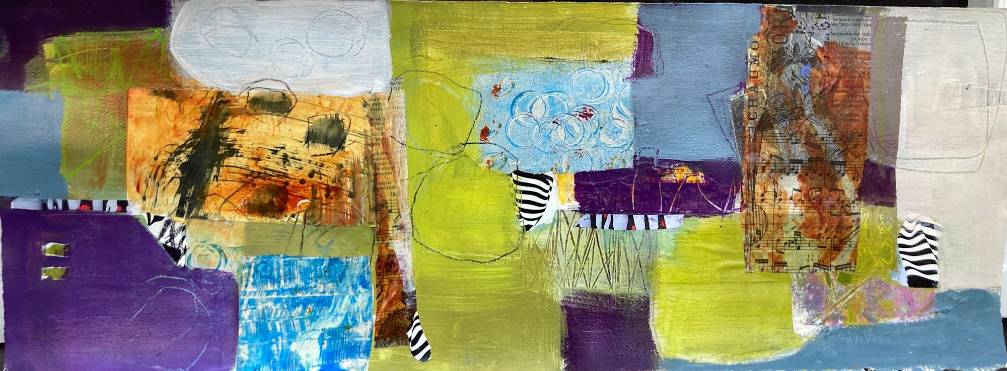 This piece combines several of my favorite things - working with mixed media, painting on paper and playing with green, purple and gold.