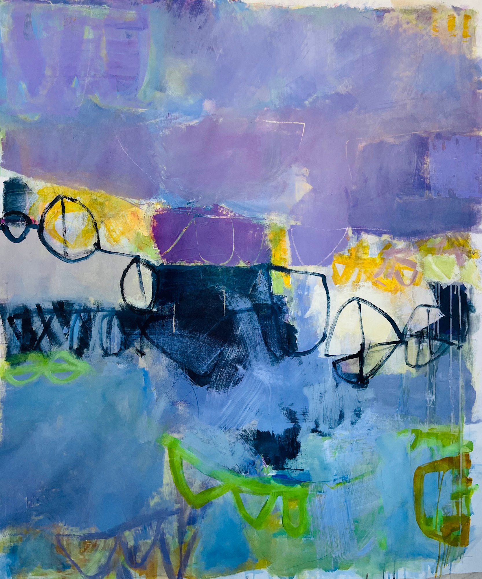 This painting is called "evolution", as it reflects my evolution as a woman and as a painter. I have been evolving from an identity primarily as a Psychologist to one that includes and embraces being an artist. As I did so, I wanted to go big. This was the first large painting on unstretched canvas that I ever made and it went through countless iterations. Thus, again, the title "evolution". Where we end up in life and where a painting ends up is the culmination of luck and planning, along with twists and turns no one could predict. The result is surprising and illuminating.