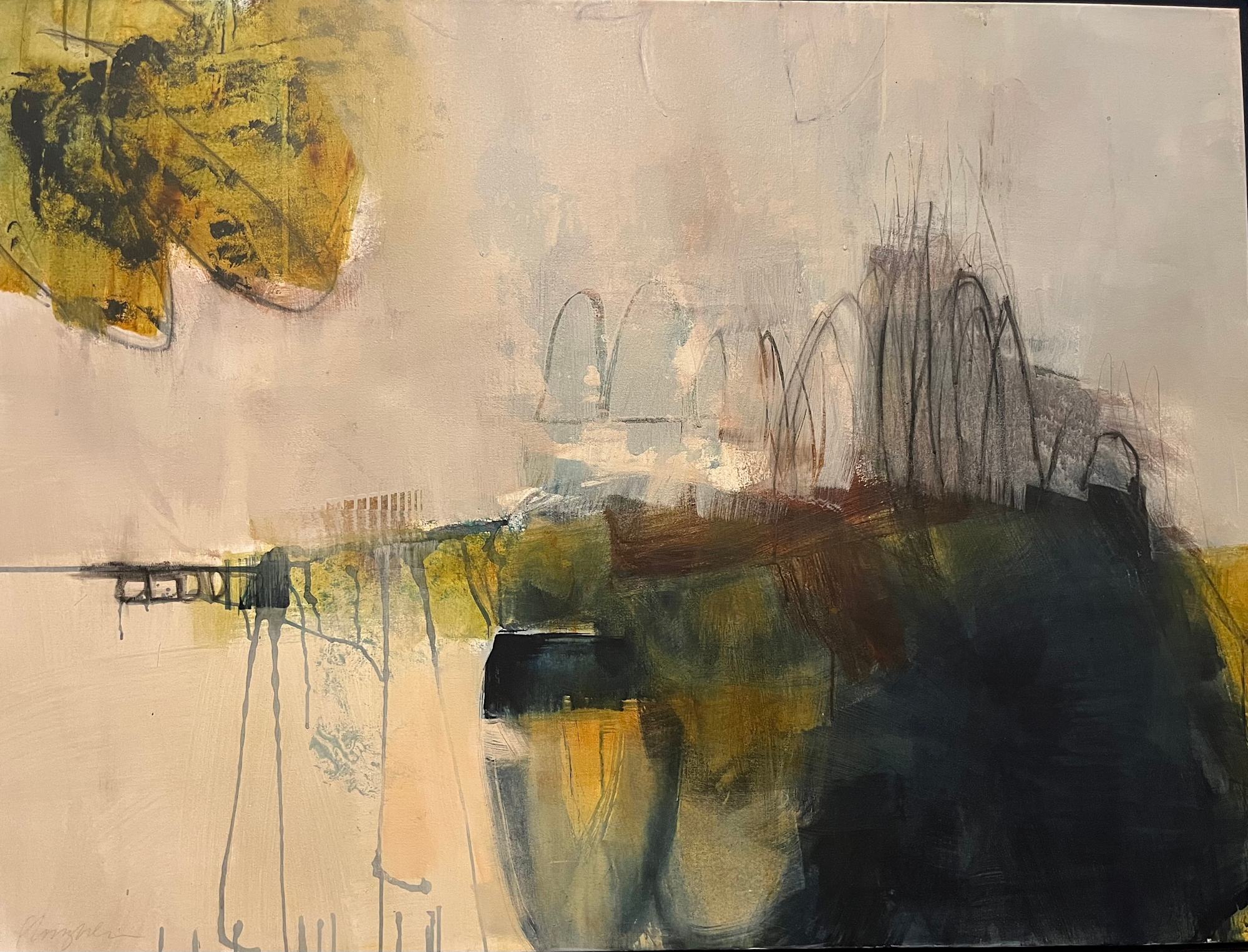 This painting started out as a "garbage board" - a place to put unused paint from other work. As often happens, something unintentional that showed up on the canvas sparked my imagination and evolved into this painting, which has an ethereal feel to it.