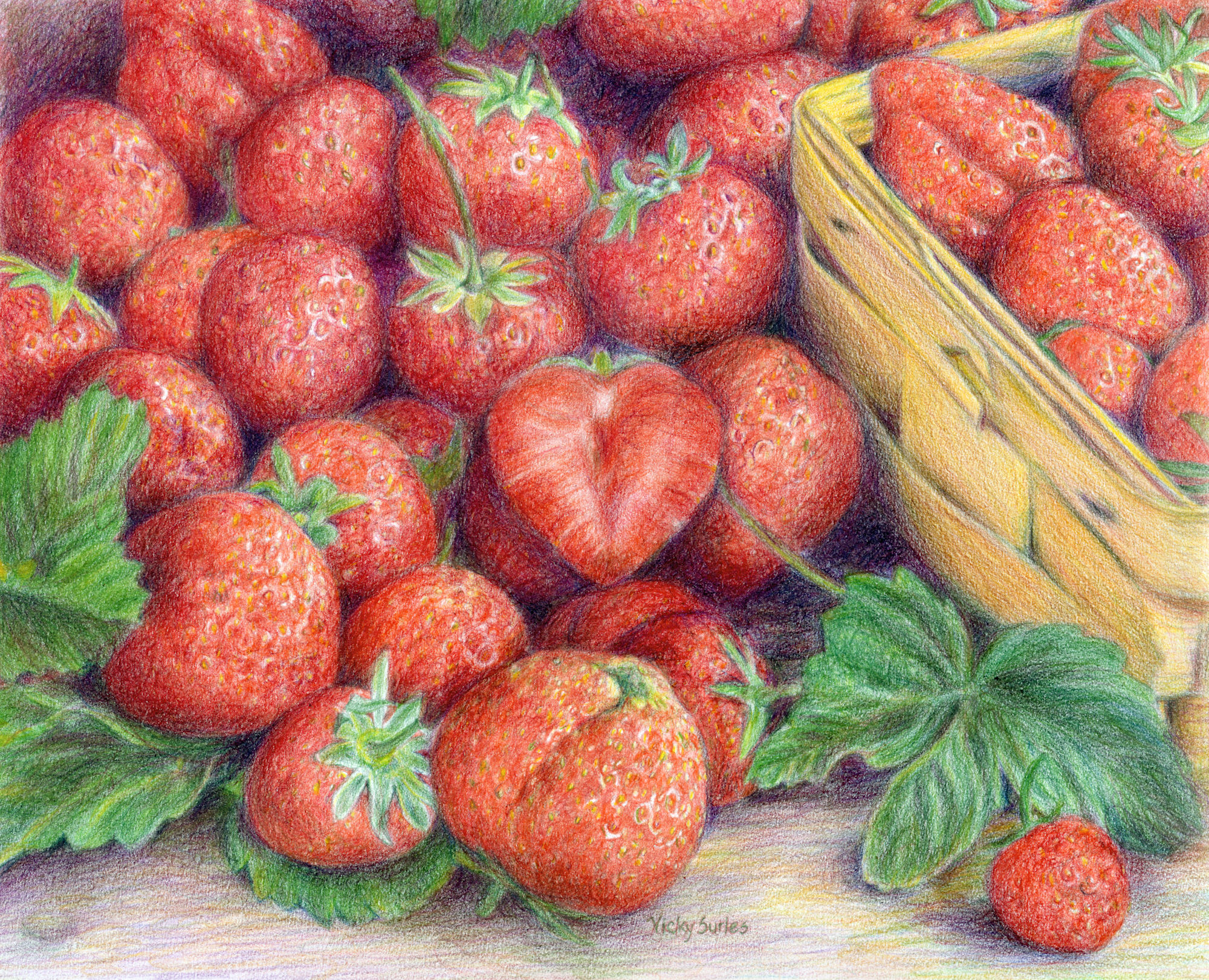 MessageOverflowing basket of strawberries, with a central berry cut-in-half forming a heart shape