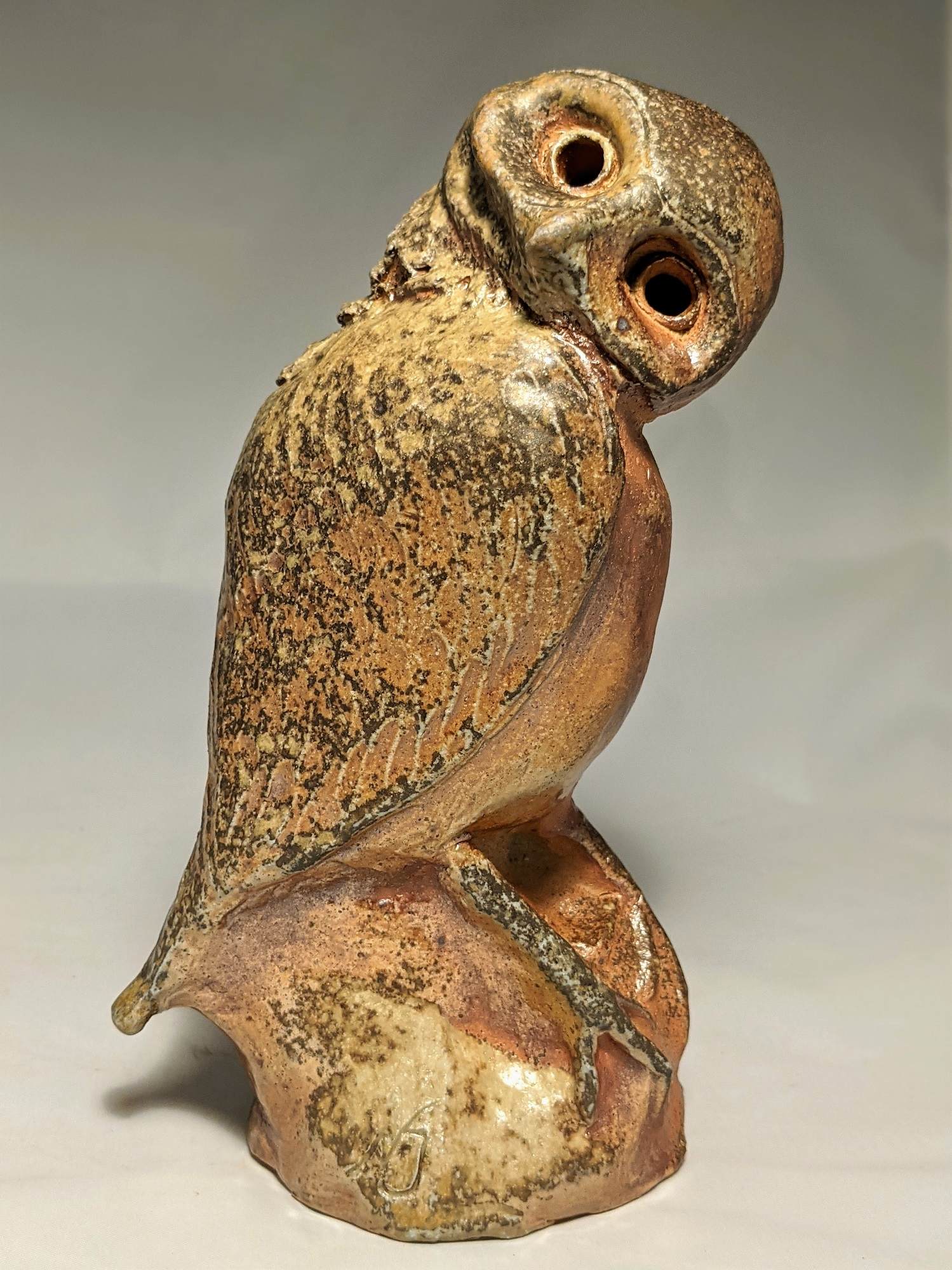 MessageThis is a wood-fired sculpture of a burrowing owl. Wood-firing is a 36-hour long process of constantly feeding a kiln with wood to achieve temperatures so hot that the ash actually melts, glazing the pieces with the minerals trapped in the wood.