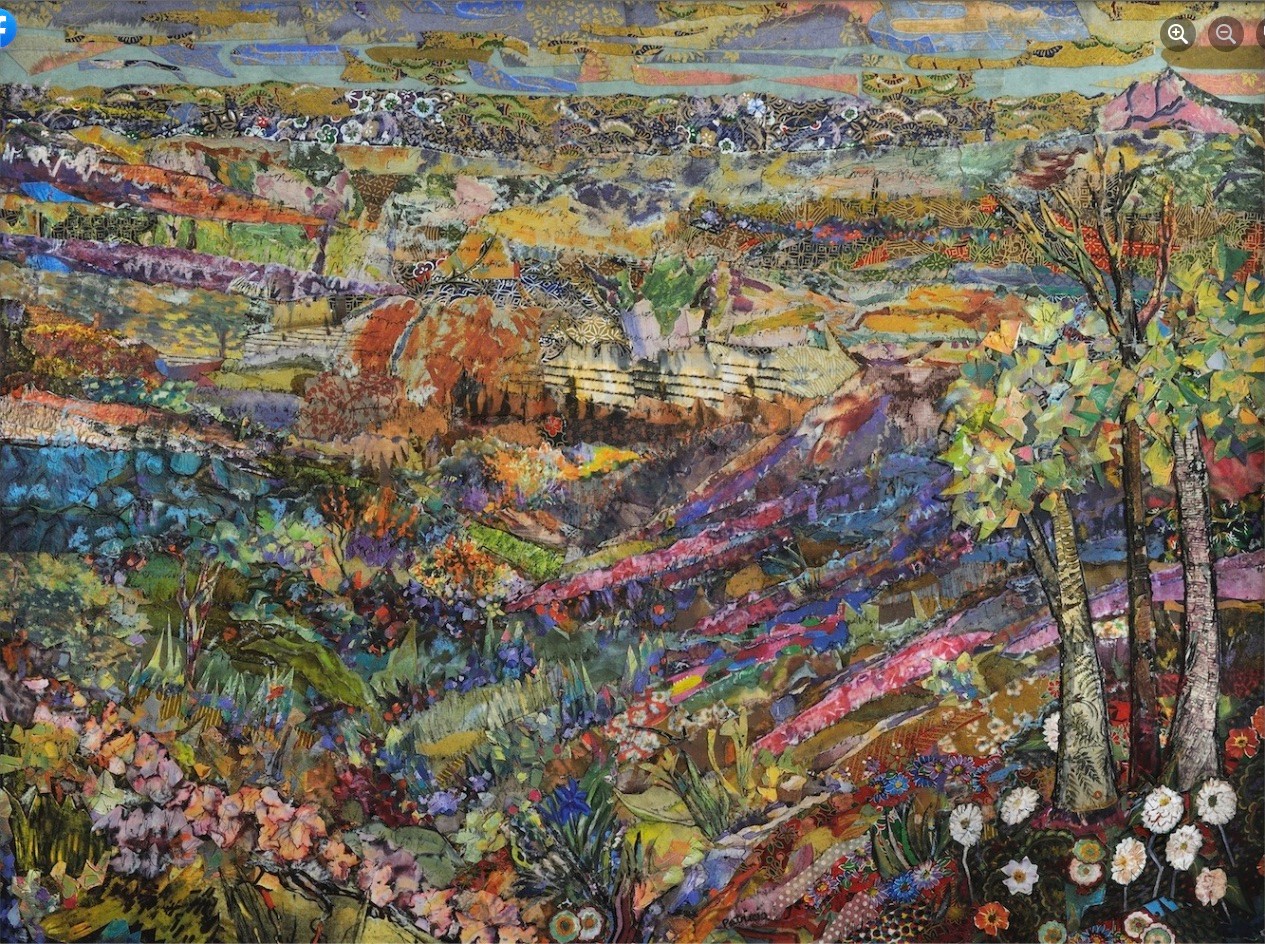 MessageFantasy landscape with geometric, floral, origami and watercolor images with 2 & 3 dimensions used together making an interesting view of an imaginary landscape.