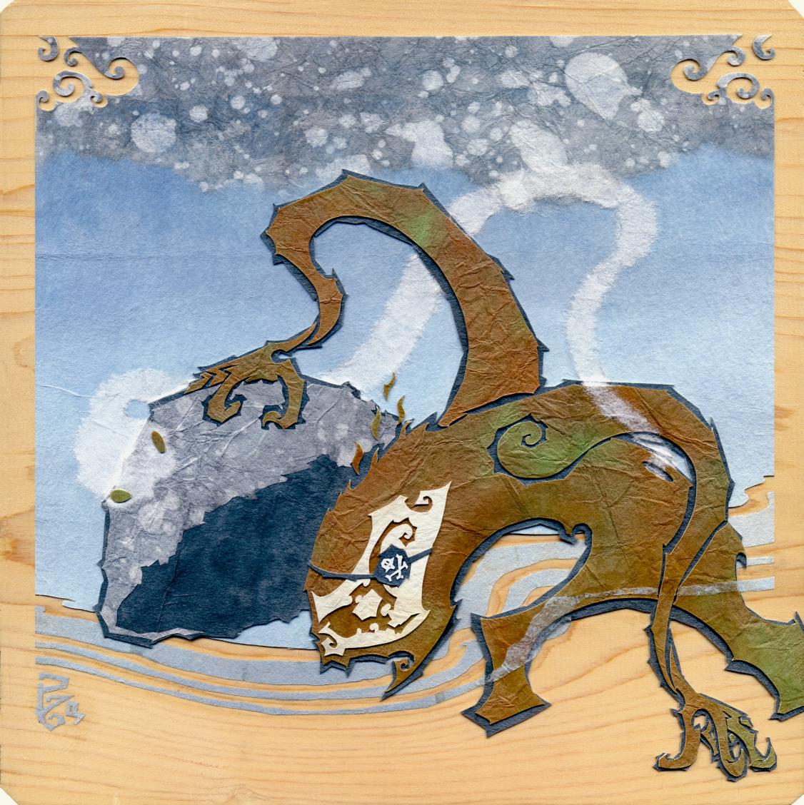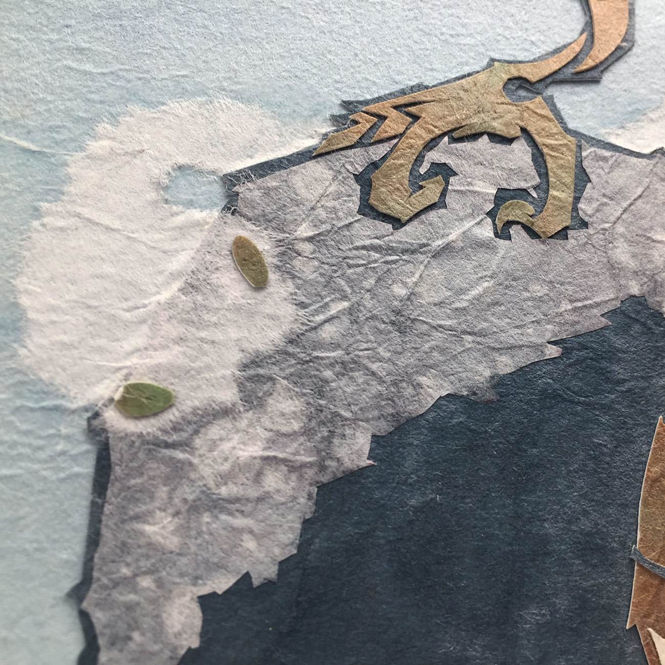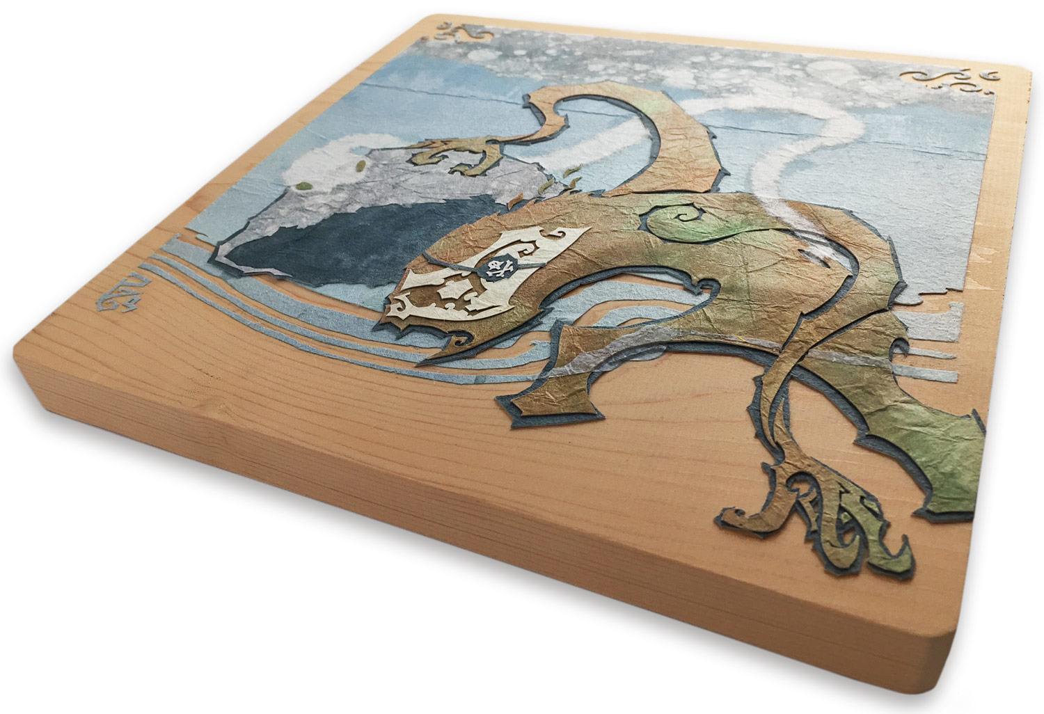 Crafted with vibrant, textural Japanese washi papers on cherry wood, “That Which Is Always Missing” explores the inner search for fulfillment. This layered artwork captures the tension between longing and the realization that what we seek may be closer than we think—waiting only for the inner courage to embrace it.