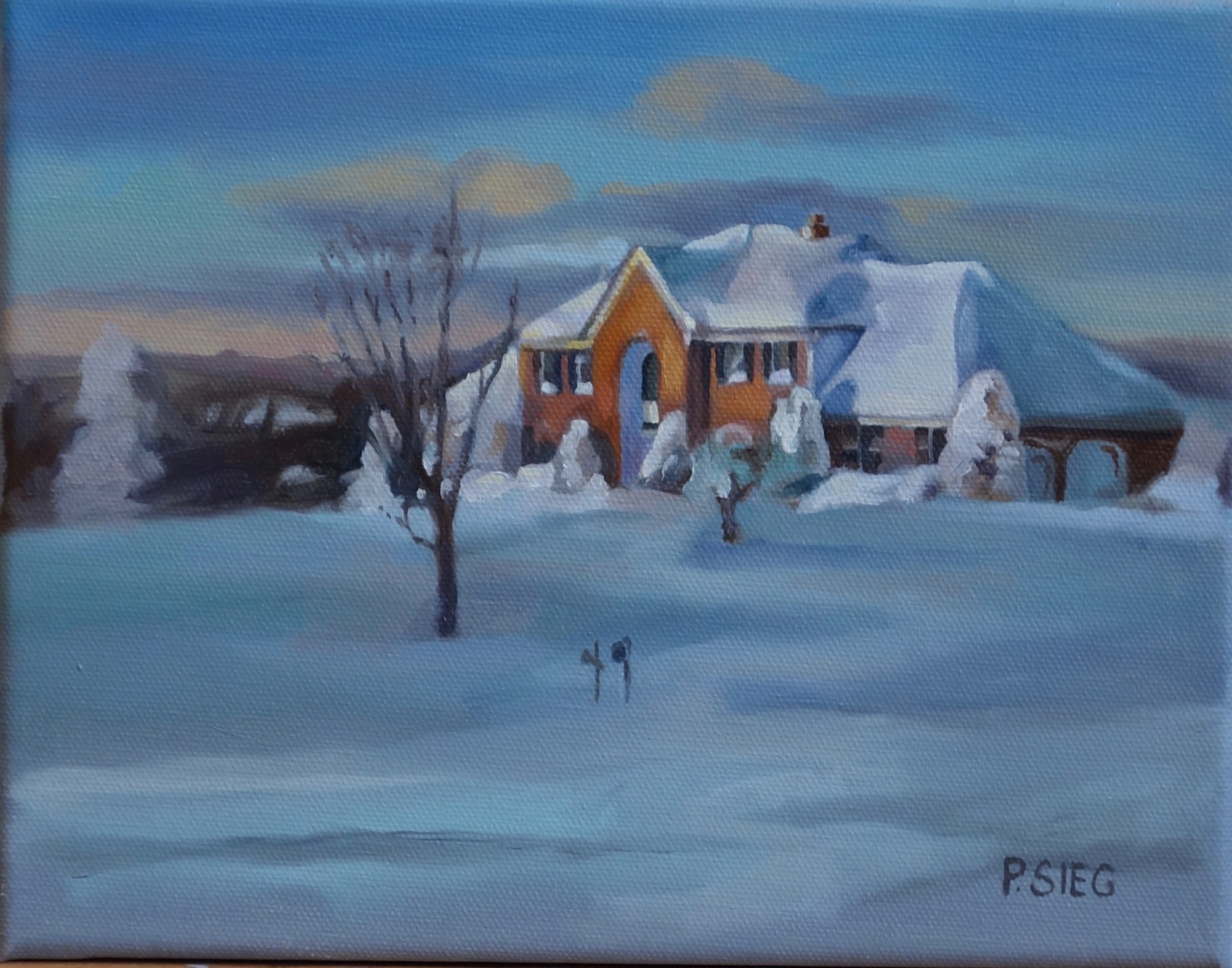 A cold winter evening after a snowfall. Neighbor Ming Lei's beautiful home.