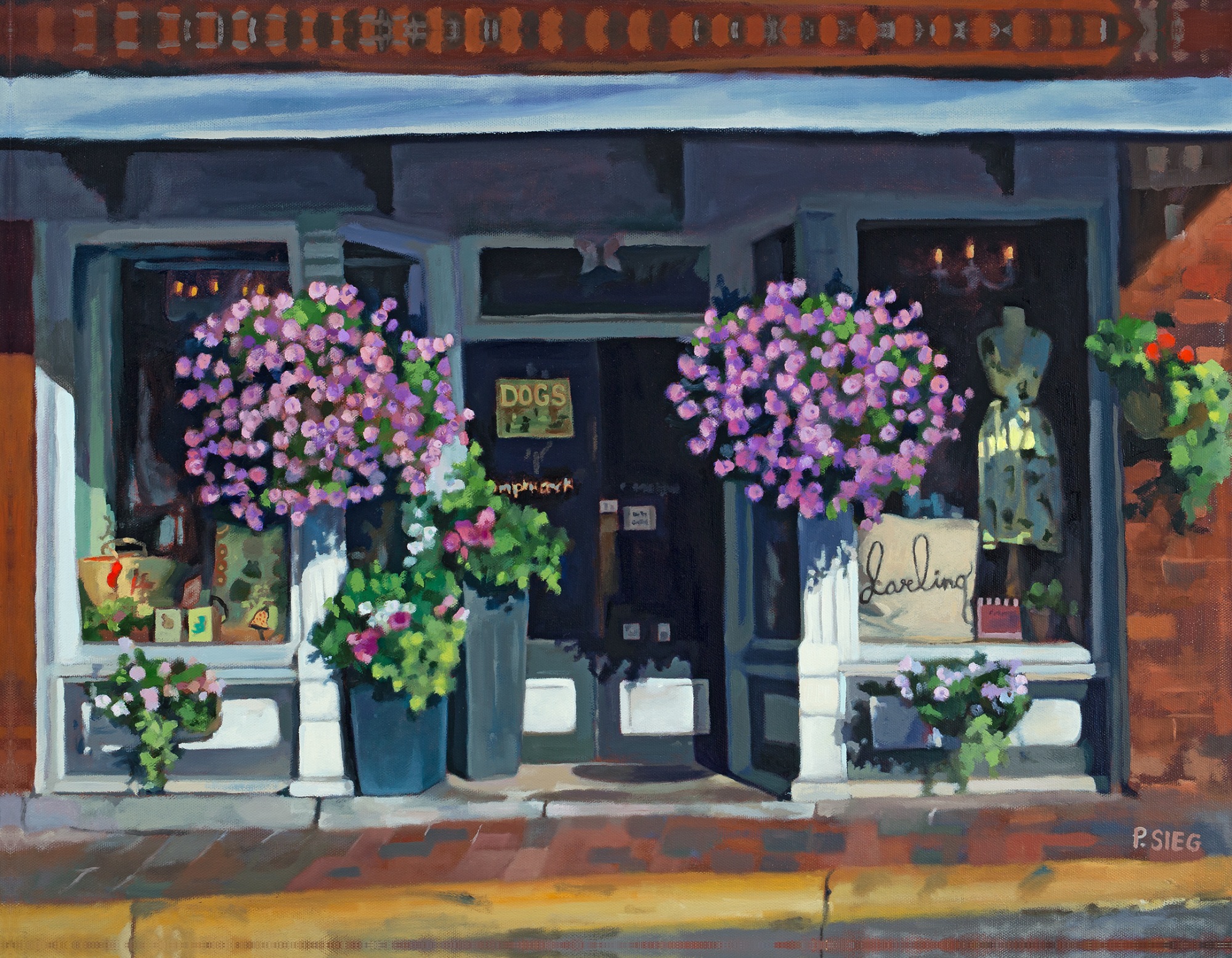 Painting of the window of Pumpkin Seeds Shop in Lexington, VA. June