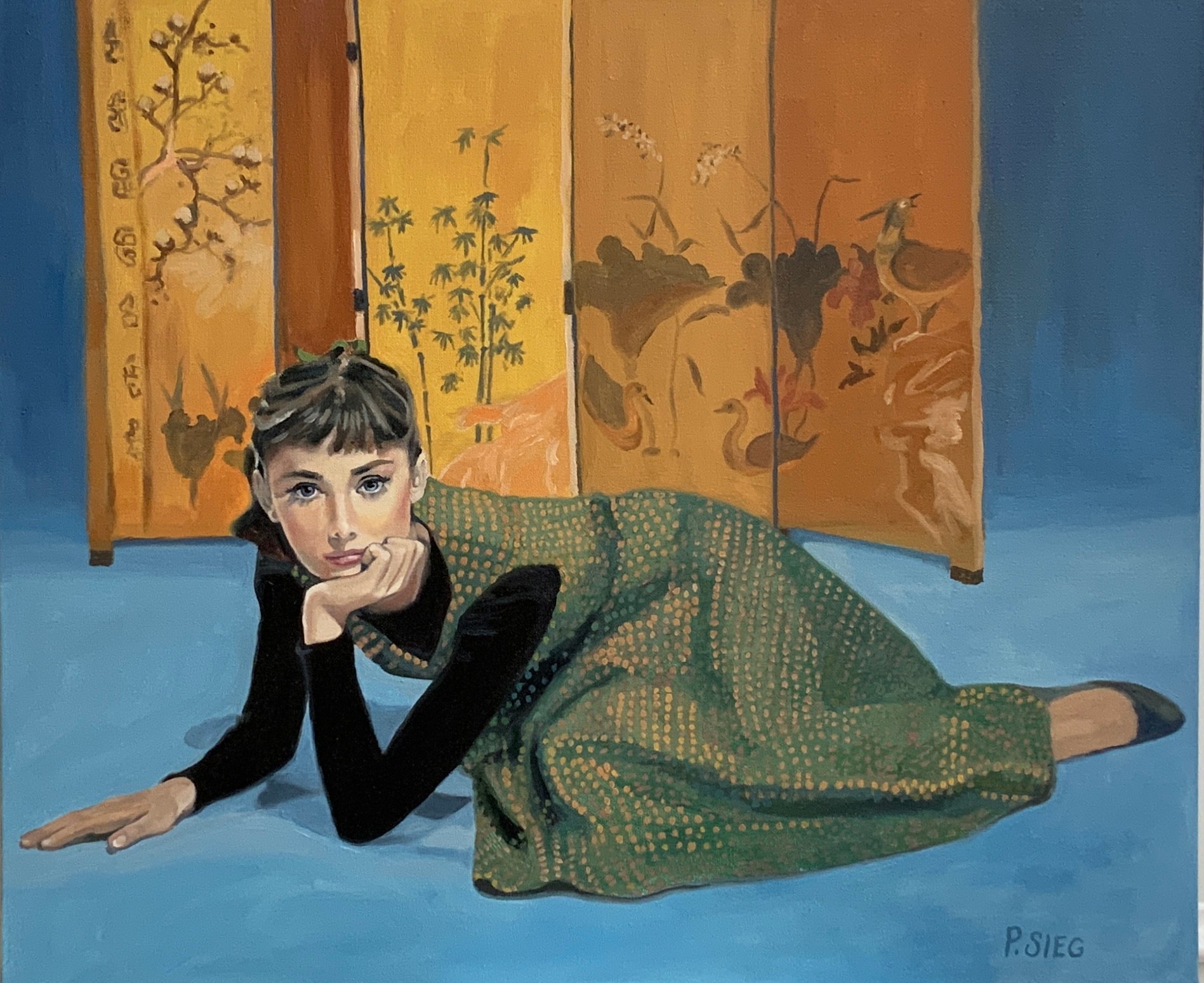 Based on a black and white publicity photo for the movie Sabrina. The screen was added and is in the artist’s foyer.