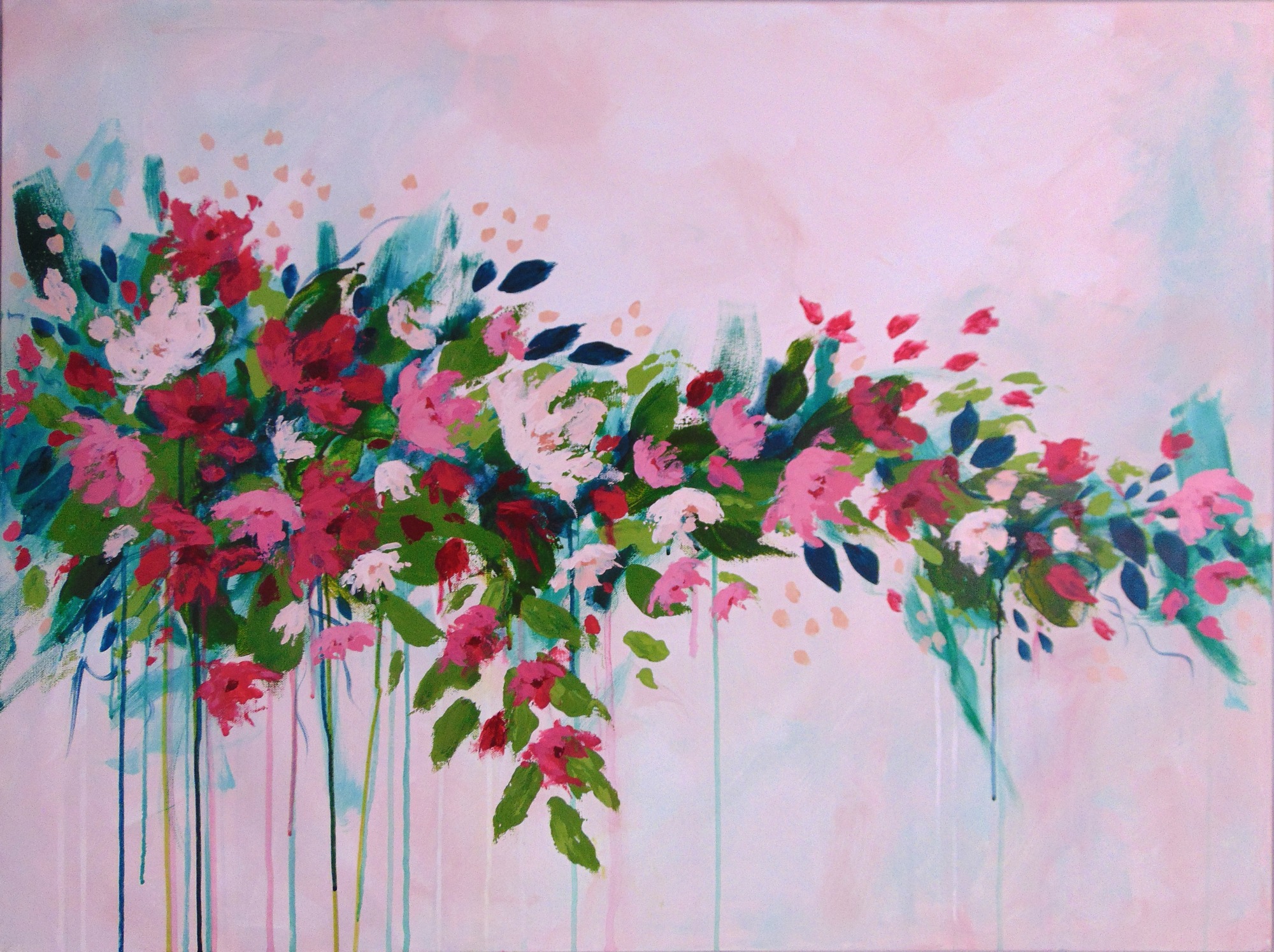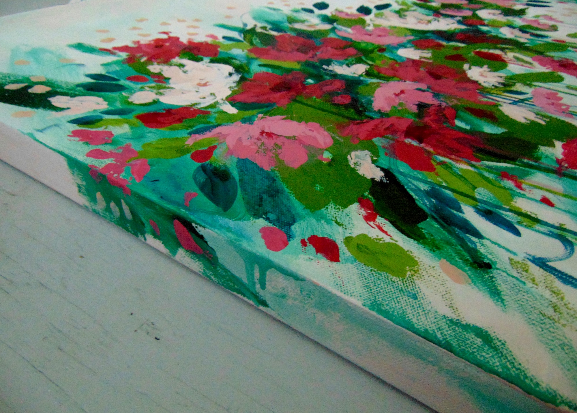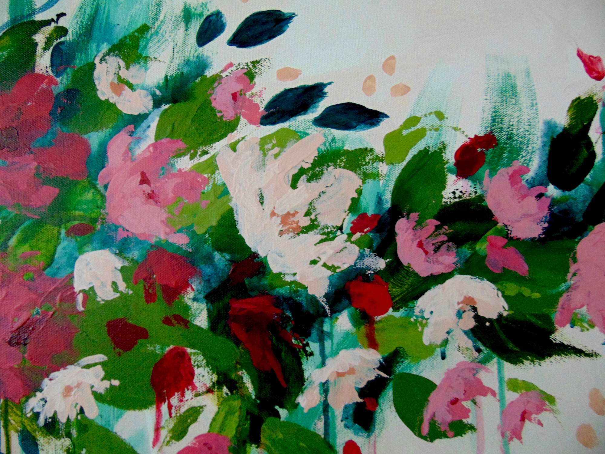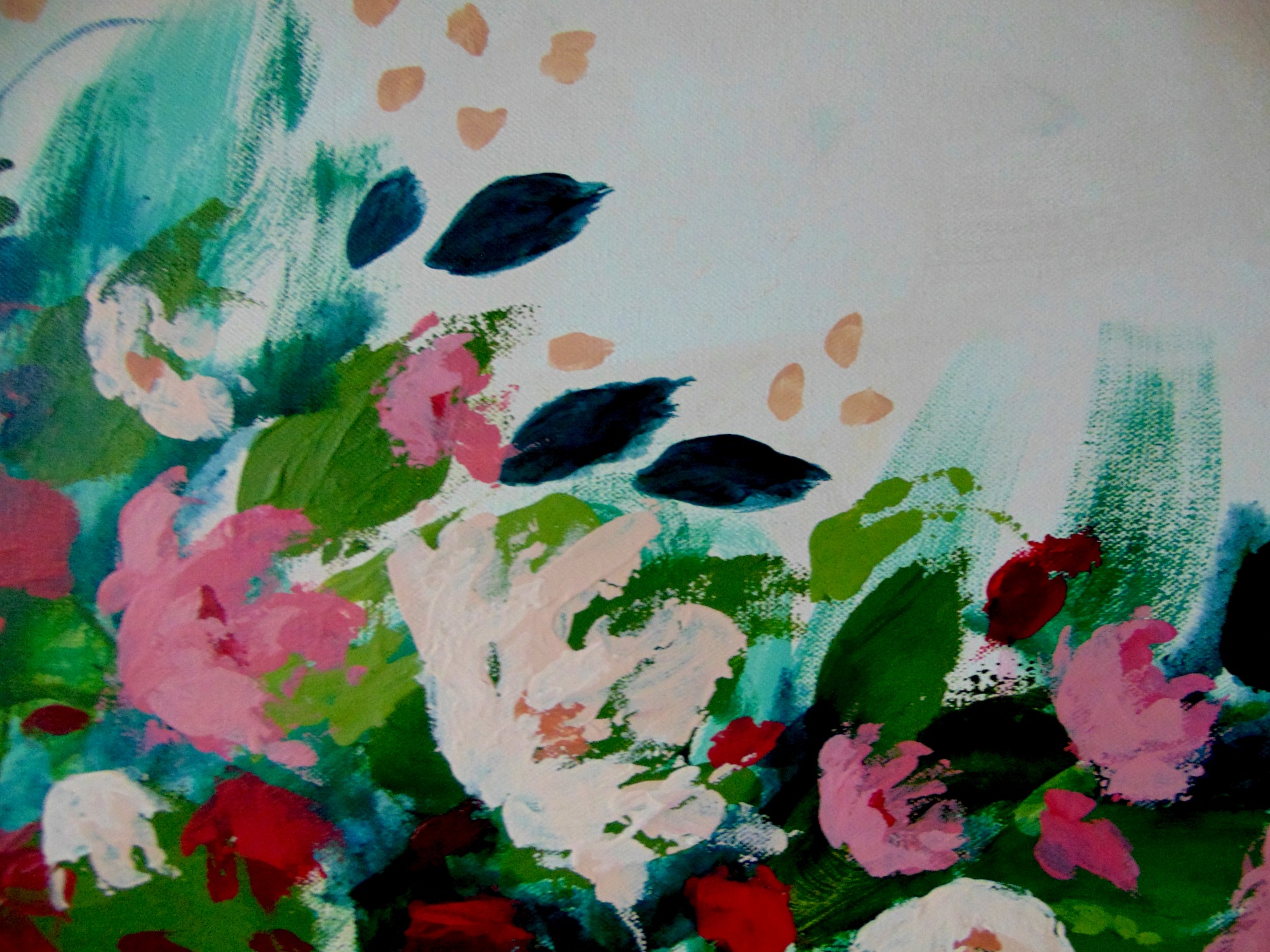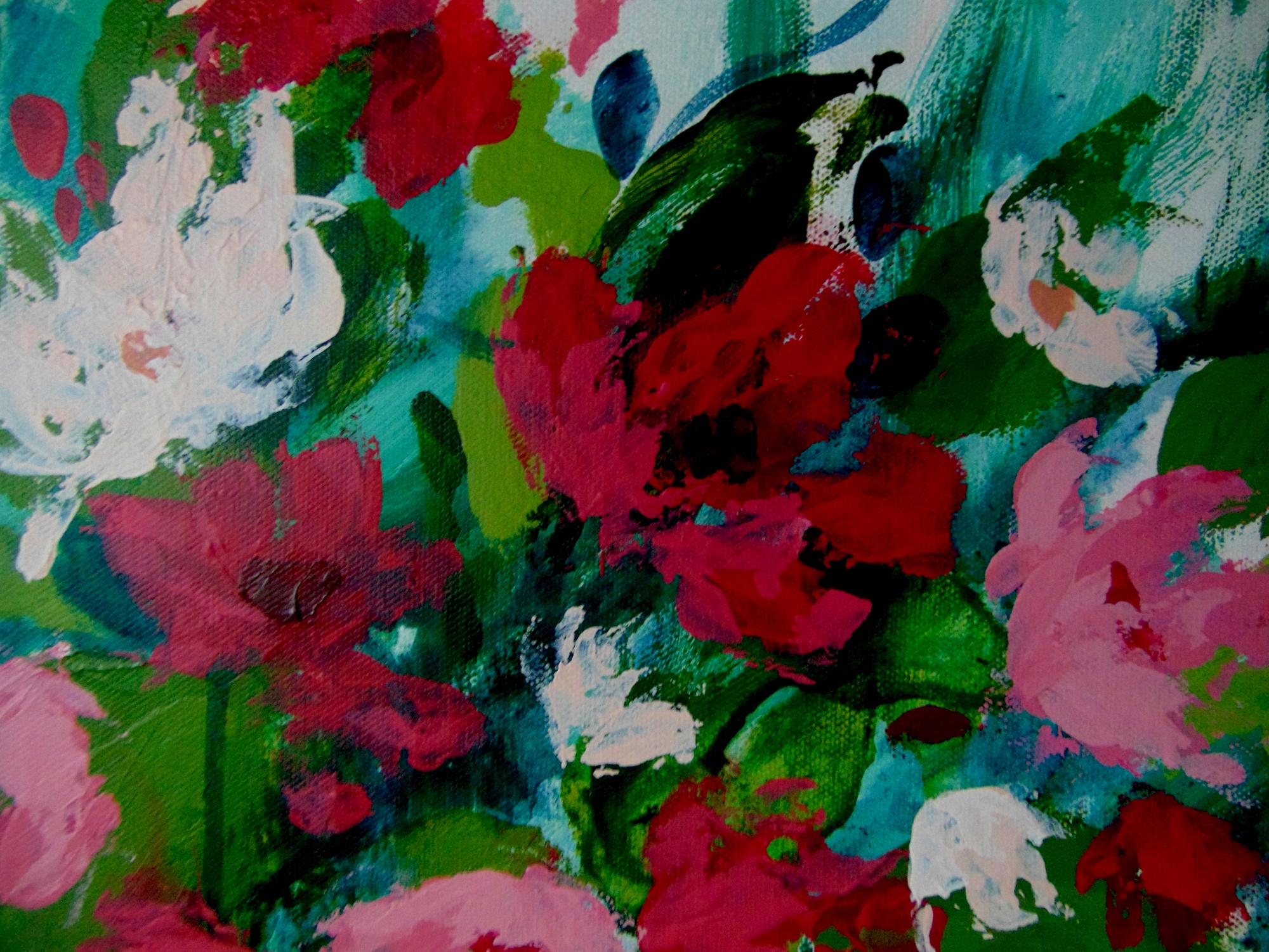 This painting is the first "official" painting of my 57th year. I decided to dedicate it to turning 57 this year. It looks like my life right now - abundant, colorful and lively.