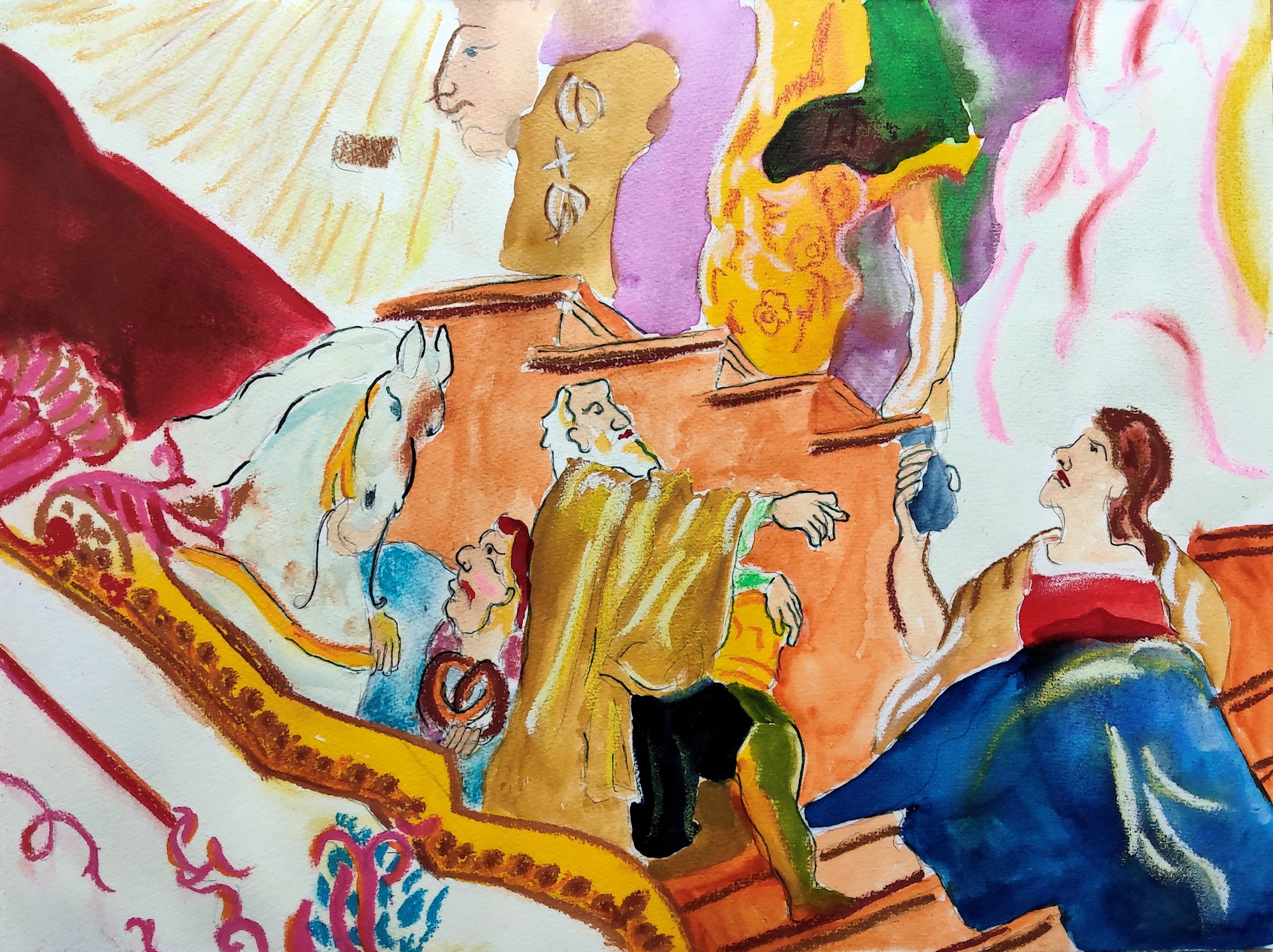 Pastel over Aquarell on Paper