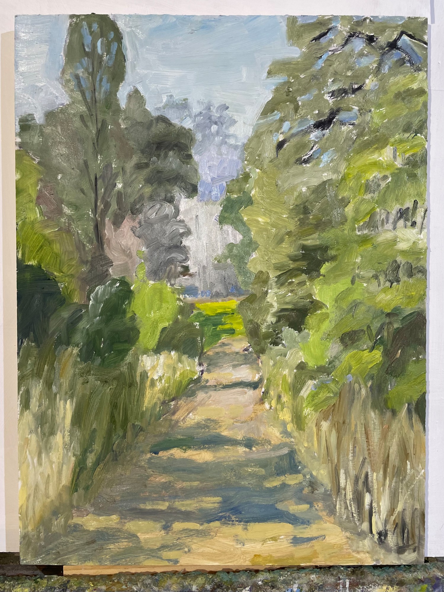 This painting from within the Lane Cove National Park shows the track from Pittwater Road down to the Lane Cove River and to the opposite site.